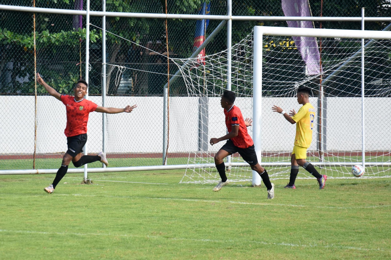 Jefri Setyawan berhasil memasukkan bola melalui sundulan kepala, hingga merubah