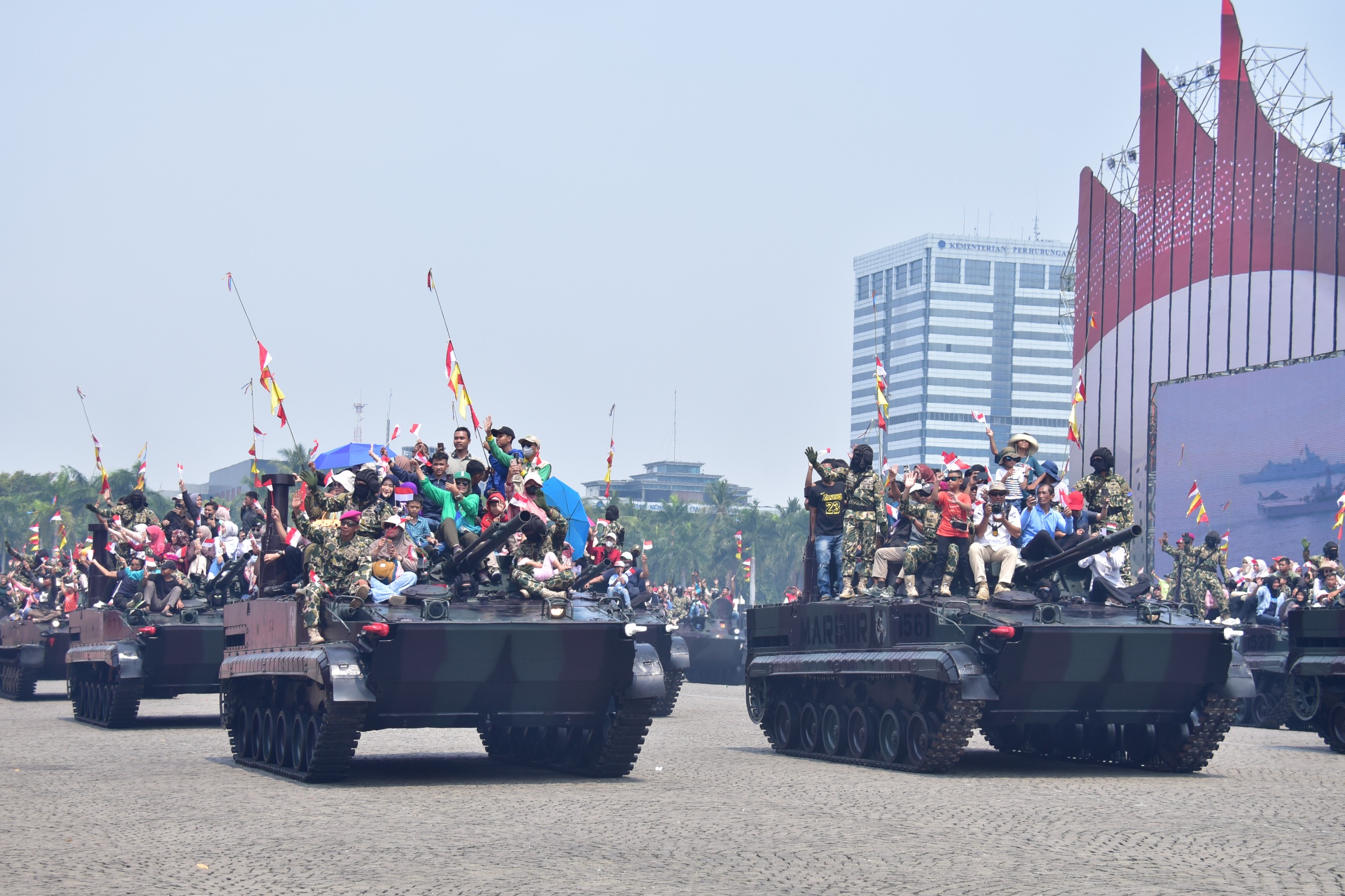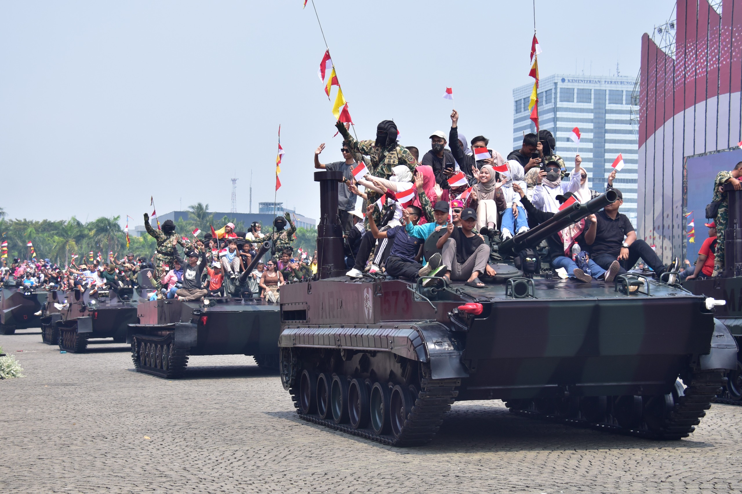 MASYARAKAT ANTUSIAS NAIK TANK DAN KENDARAAN TEMPUR MARINIR