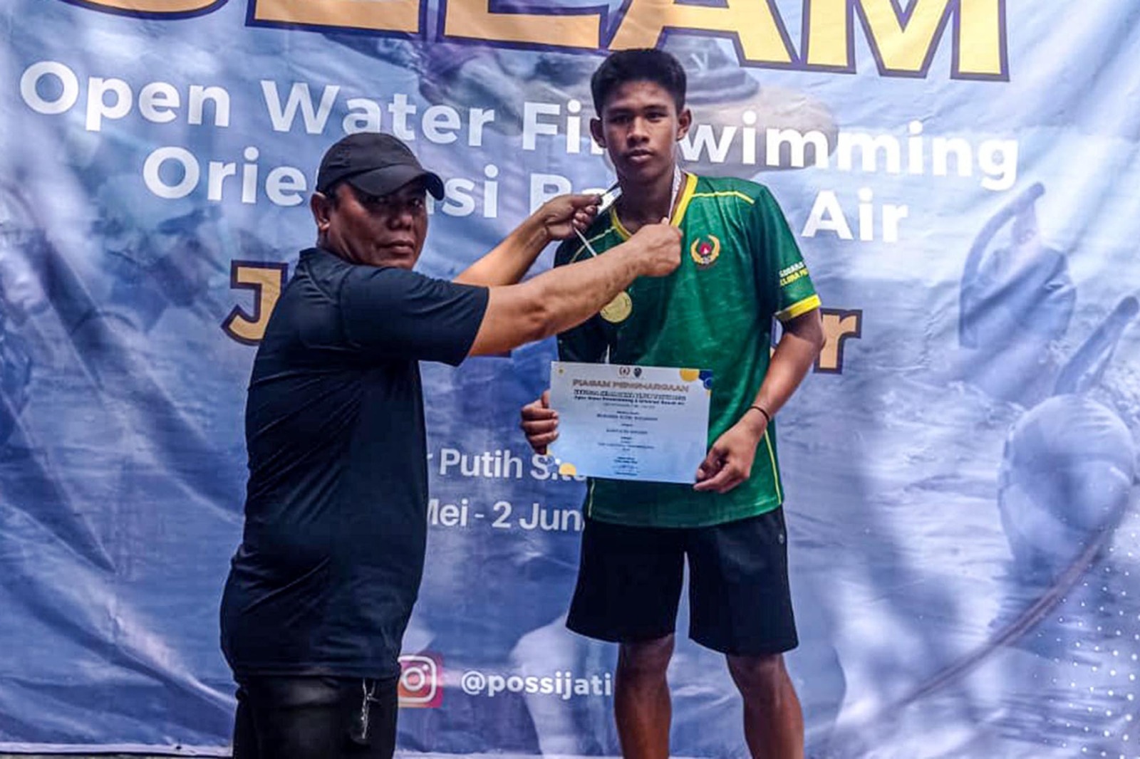 TNI AL, Dispen Kormar (Situbondo). Keluarga Prajurit Batalyon Infanteri 3 Marinir, Muhammad Agung Wicaksono anak dari Kopka Marinir Edi Purnomo berhasil menjuarai Kejuaraan Daerah (Kejurda) Selam Open Water Finswimming Orientasi Bawah Air Jawa Timur 2024 yang diselengarakan di Pantai Pasir Putih, Situbondo Jawa Timur. Minggu (02/06/2024).
