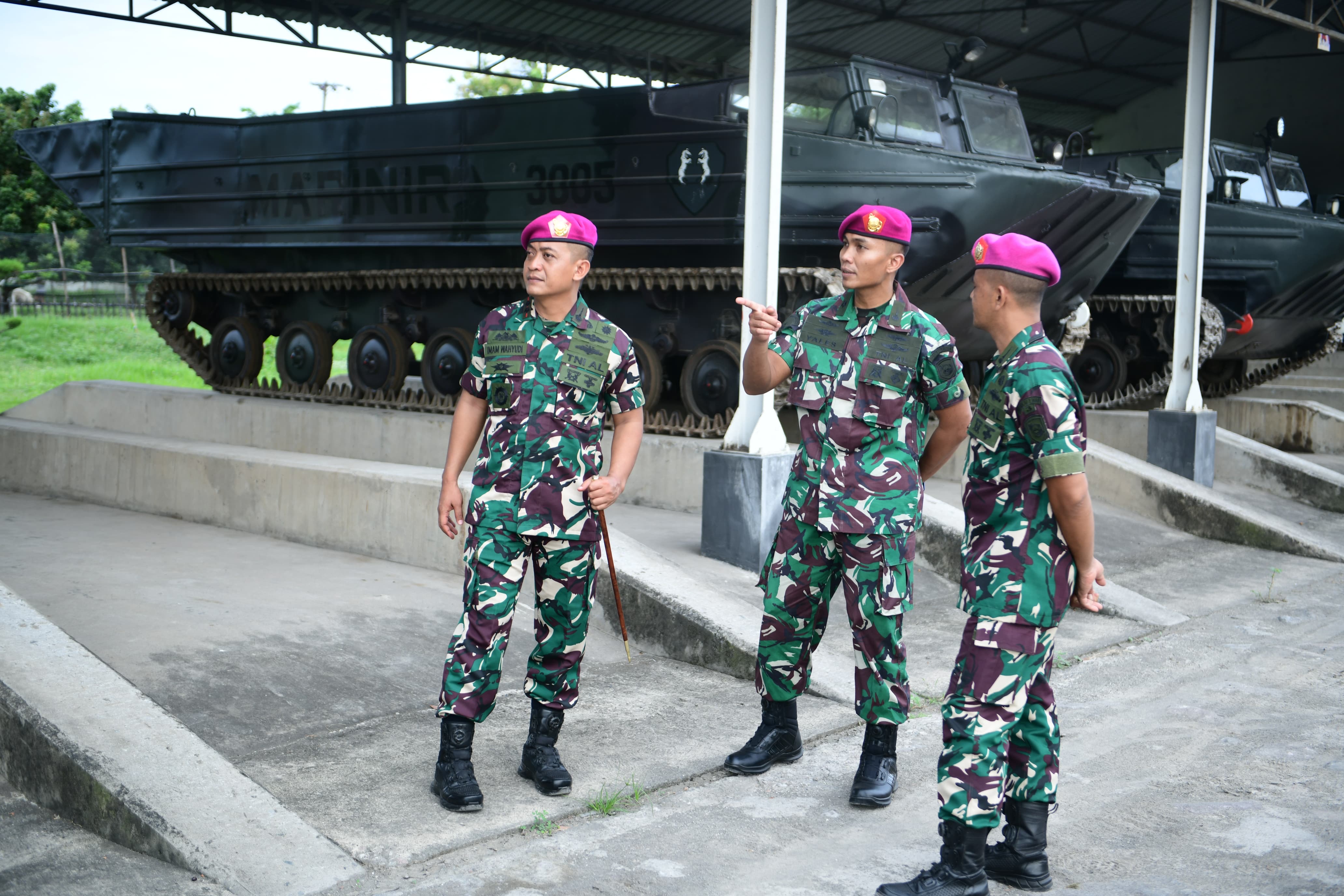 Setelah memberikan gambaran situasi dan kondisi Batalyon Kapa 2 Marinir, Letnan Kolonel Marinir Imam Wahyudi, M.Tr.Opsla., bersama Mayor Marinir Yalesesa Milwa Suga sebagai calon Komandan yang baru untuk Tour Facility.