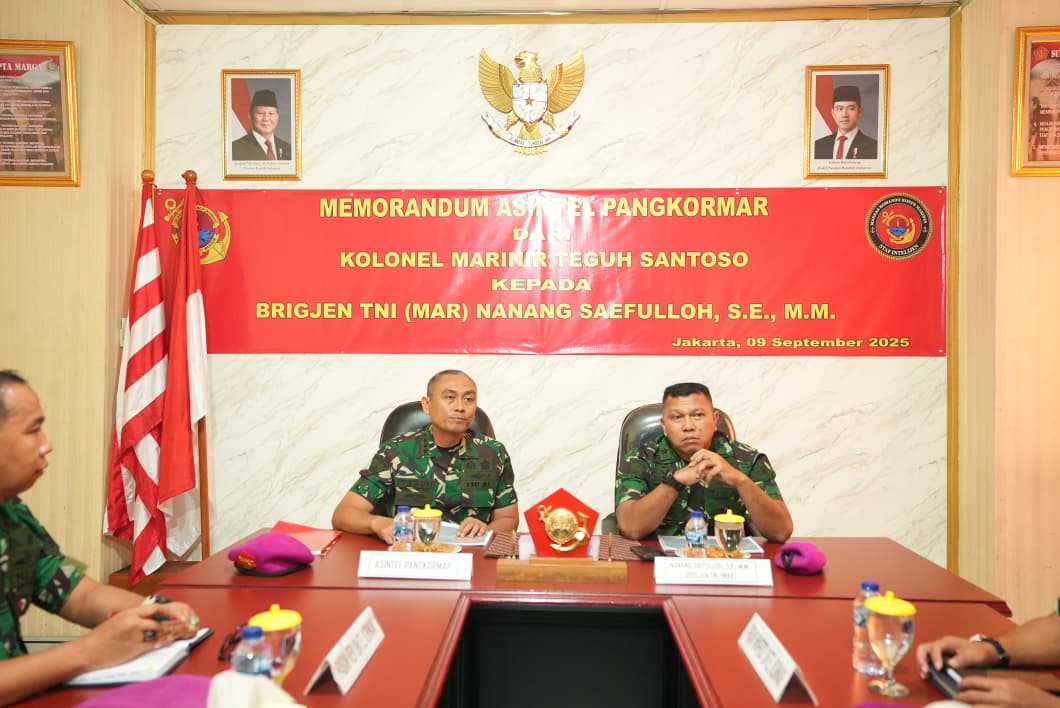 TNI Angkatan Laut, Dispen Kormar, (Jakarta). Estafet kepemimpinan di jajaran intelijen Korps Marinir kembali bergulir. Kolonel Marinir Teguh Santoso secara khidmat menyerahkan tugas dan tanggung jawab jabatan Asisten Intelijen (Asintel) Panglima Korps Marinir kepada Brigadir Jenderal TNI (Mar) Nanang Saefulloh, S.E., M.M., dalam prosesi memorandum yang digelar di ruang Rapat Staf Intelijen Korps Marinir, Kesatrian Ali Sadikin, Jl. Prajurit KKO Usman dan Harun No. 40 Jakarta Pusat. Selasa (09/09/2025).