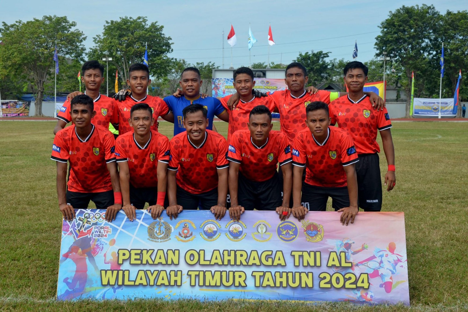 TNI AL, Dispen Kormar (Surabaya) Atlet Sepak Bola Yonif 1 Marinir yang tergabung pada Tim Marwiltim berhasil mengantarkan cabang sepakbola menjadi juara pada pertandingan final sepak bola Poral Wiltim di Stadion Jala Krida Mandala Akademi Angkatan Laut Bumimoro, Surabaya, Jawa Timur.(29/06/2024)