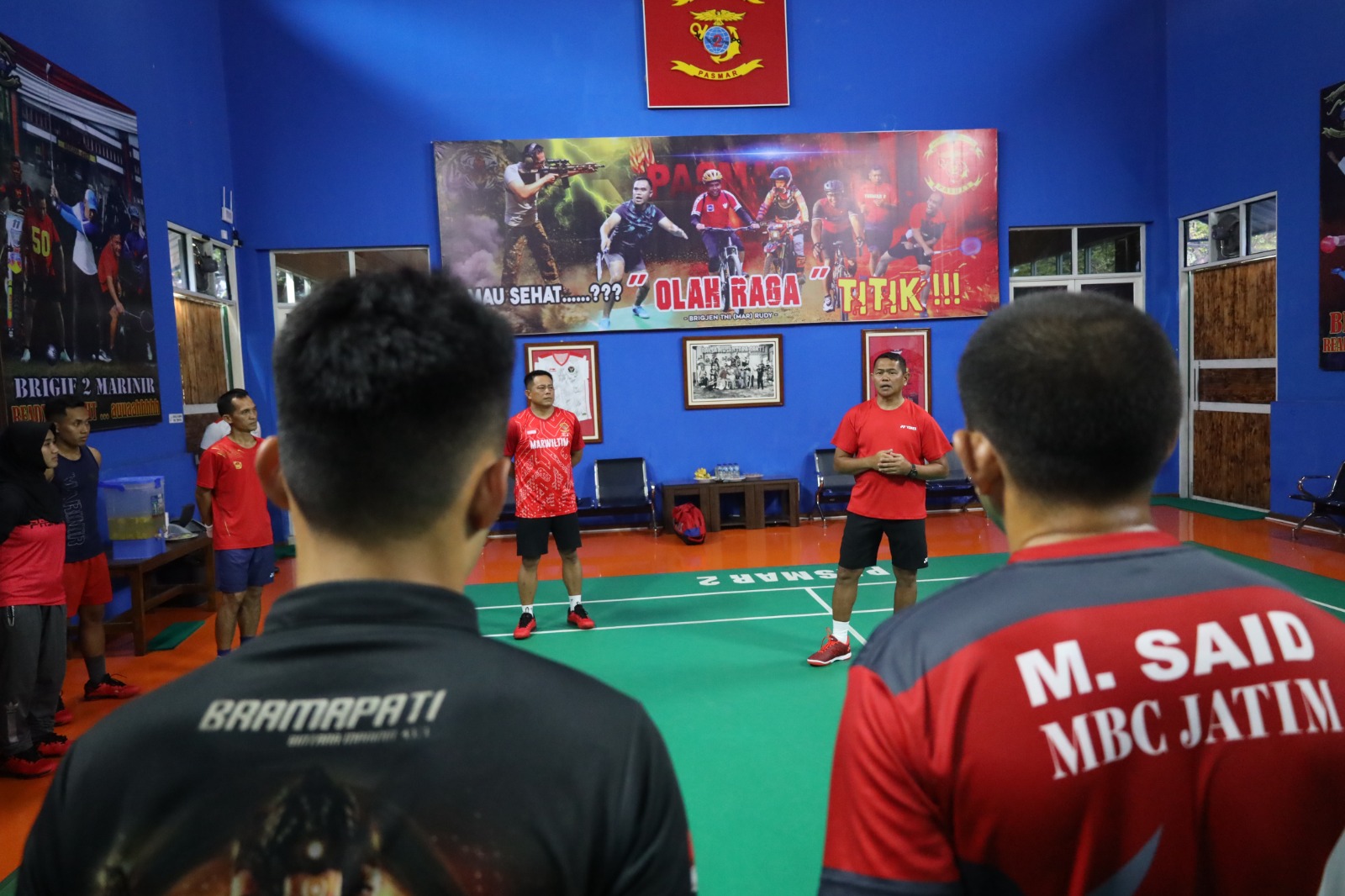 Kedatangan Wadan Kormar disambut Kayanus Bulutangkis Marwiltim Letkol Marinir Ahmad Fauzi, M.Tr. Opsla., dilanjutkan pengarahan Wadan Kormar kepada atlet Marwiltim yang telah melaksanakan pertandingan di Pekan Olah Raga Angkatan Laut Wilayah Timur (Poralwiltim) tahun 2024.