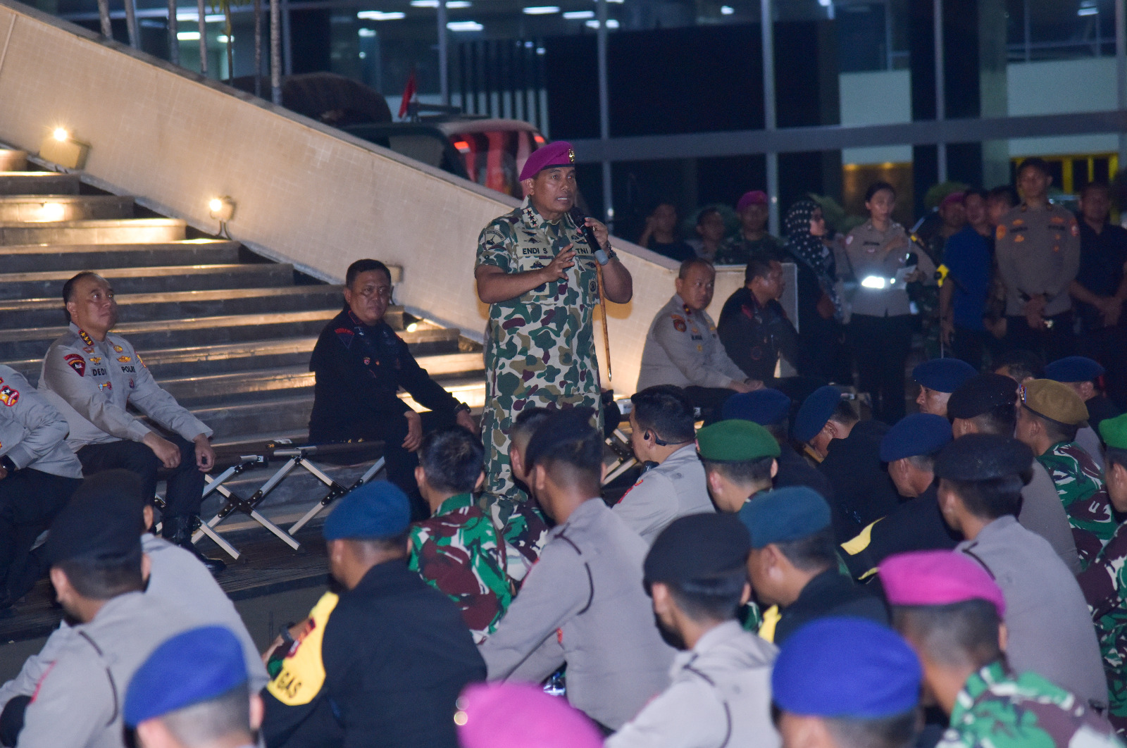 Dalam kesempatan tersebut, Letnan Jenderal TNI (Mar) Dr. Endi Supardi, S.E., M.M., M.Tr.Opsla., CHRMP., CRMP. menegaskan kepada seluruh prajurit agar tidak mudah terprovokasi oleh upaya adu domba yang dapat memecah belah bangsa. Pangkormar menekankan bahwa kekuatan TNI dan Polri terletak pada persatuan, dan selama soliditas itu terjaga maka tidak ada kekuatan apapun yang mampu menggoyahkan NKRI. âJangan pernah goyah, jangan pernah terpecah. TNI dan Polri adalah benteng terakhir bangsa, kita berdiri tegak demi kehormatan merah putih,â tegasnya.