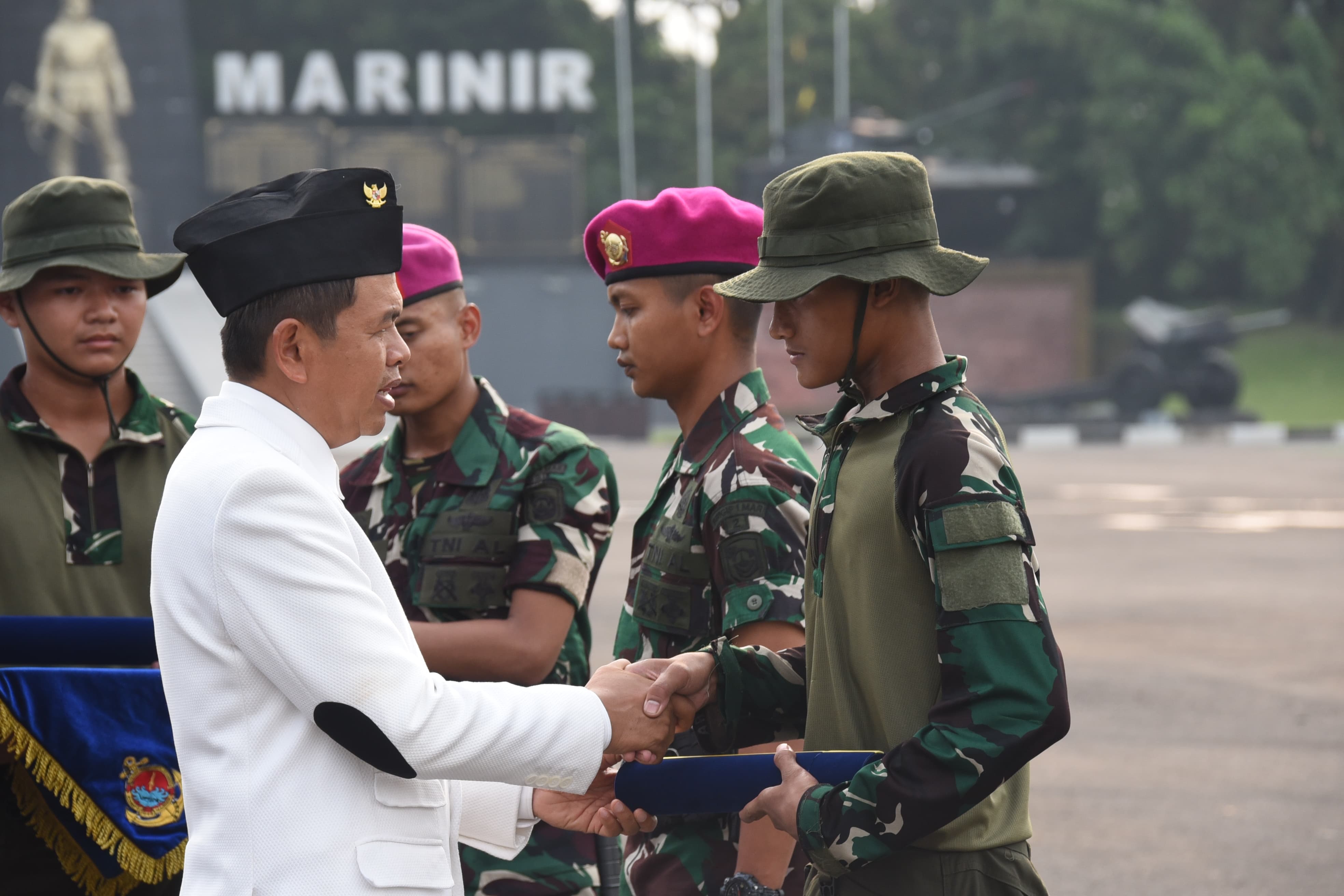 Dispen Kormar TNI Angkatan Laut (Jakarta). Panglima Korps Marinir Letnan Jenderal TNI (Mar) Dr. Endi Supardi, S.E., M.M., M.Tr.Opsla., CHRMP., CRMP. bersama Gubernur Jawa Barat Kang Dedi Mulyadi (KDM) menutup Pendidikan Gapura Panca Waluya Jawa Barat Istimewa bertempat di Lapangan Apel Brigif 1 Marinir, Kesatrian Marinir Hartono Cilandak, Jakarta Selatan, Senin (11/08/2025).