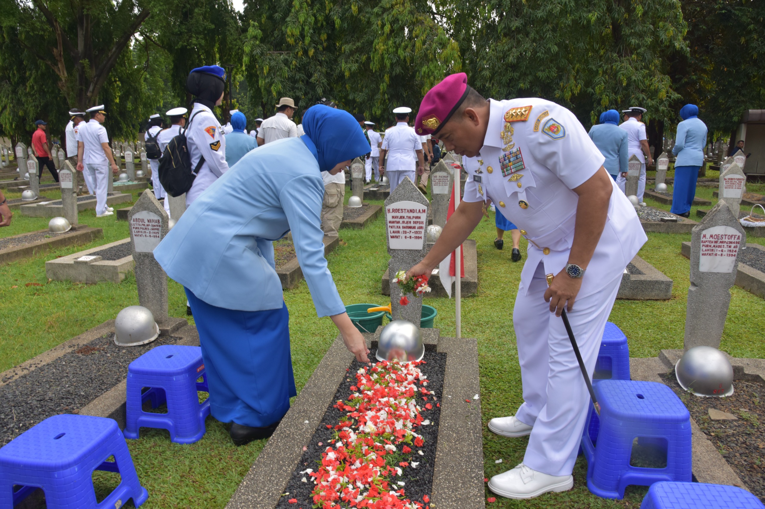 Ziarah rombongan dimulai dengan penghormatan kepada arwah para pahlawan, peletakan karangan bunga di tugu makam pahlawan, dan dilanjutkan dengan tabur bunga di pusara para prajurit TNI AL yang telah gugur dalam tugas demi bangsa dan negara.