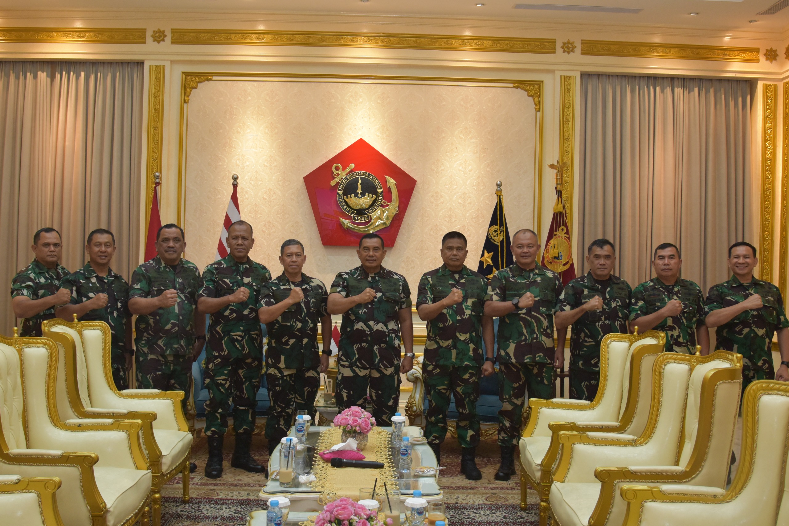 Dispen Kormar TNI Angkatan Laut (Jakarta). Panglima Korps Marinir (Pangkormar) Letnan Jenderal TNI (Mar) Dr. Endi Supardi, S.E., M.M., M.Tr.Opsla., CHRMP., CRMP., menerima kunjungan tiga perwira tinggi (Pati) Korps Marinir Mantan Pendidikan Pemantapan Pimpinan Nasional (P3K) Angkatan LXVII TA 2025 Lemhanas RI, di Admiral Room, Gedung Utama Markas Komando Korps Marinir ( Mako Kormar), jalan Prajurit KKO Usman dan Harun No.40 Kwitang, Jakarta Pusat, Jumat (22/08/2025).