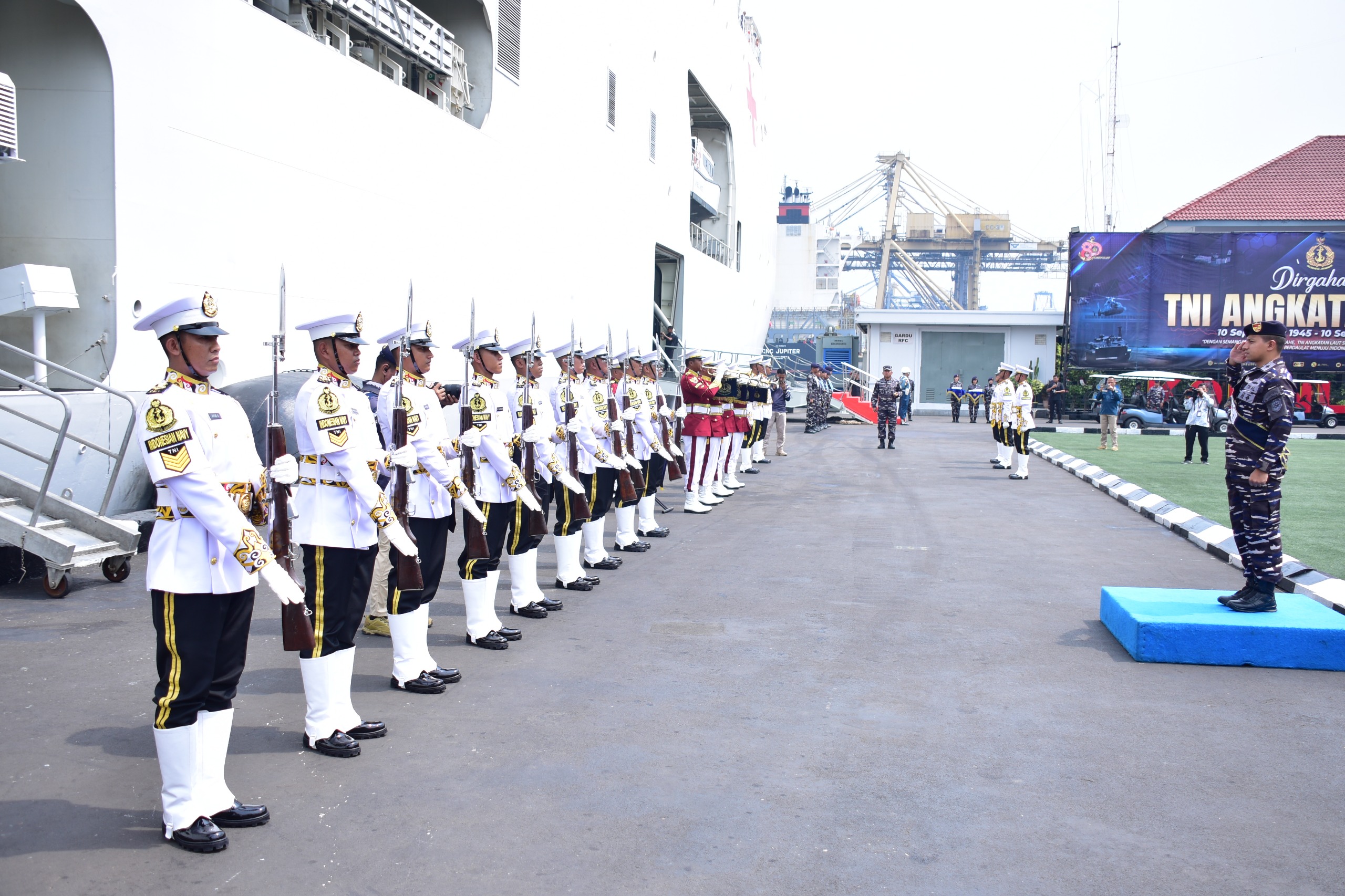 Geladi bersih juga ditinjau Wakil Kepala Staf Angkatan Laut (Wakasal) Laksamana Madya TNI Erwin S. Aldedharma, bertujuan untuk memastikan kesiapan seluruh rangkaian acara, baik tata upacara penganugerahan tanda kehormatan maupun pelaksanaan sailing pass yang akan hadiri langsung oleh Presiden Republik Indonesia selaku Inspektur Upacara pada puncak peringatan HUT ke-80 TNI.