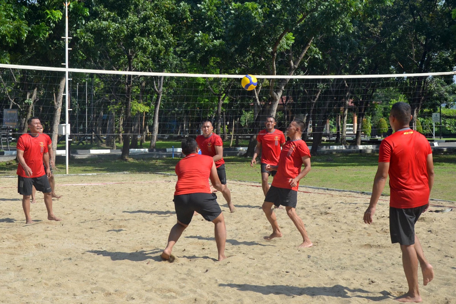 Kegiatan tersebut diawali dengan pemanasan, Senam Kesegaran Jasmani dan dilanjutkan jogging mengelilingi Kesatrian Marinir R. Suhadi dan diakhiri dengan pertandingan Fun Game Futsal dan Voli antar Perwira Satlak.