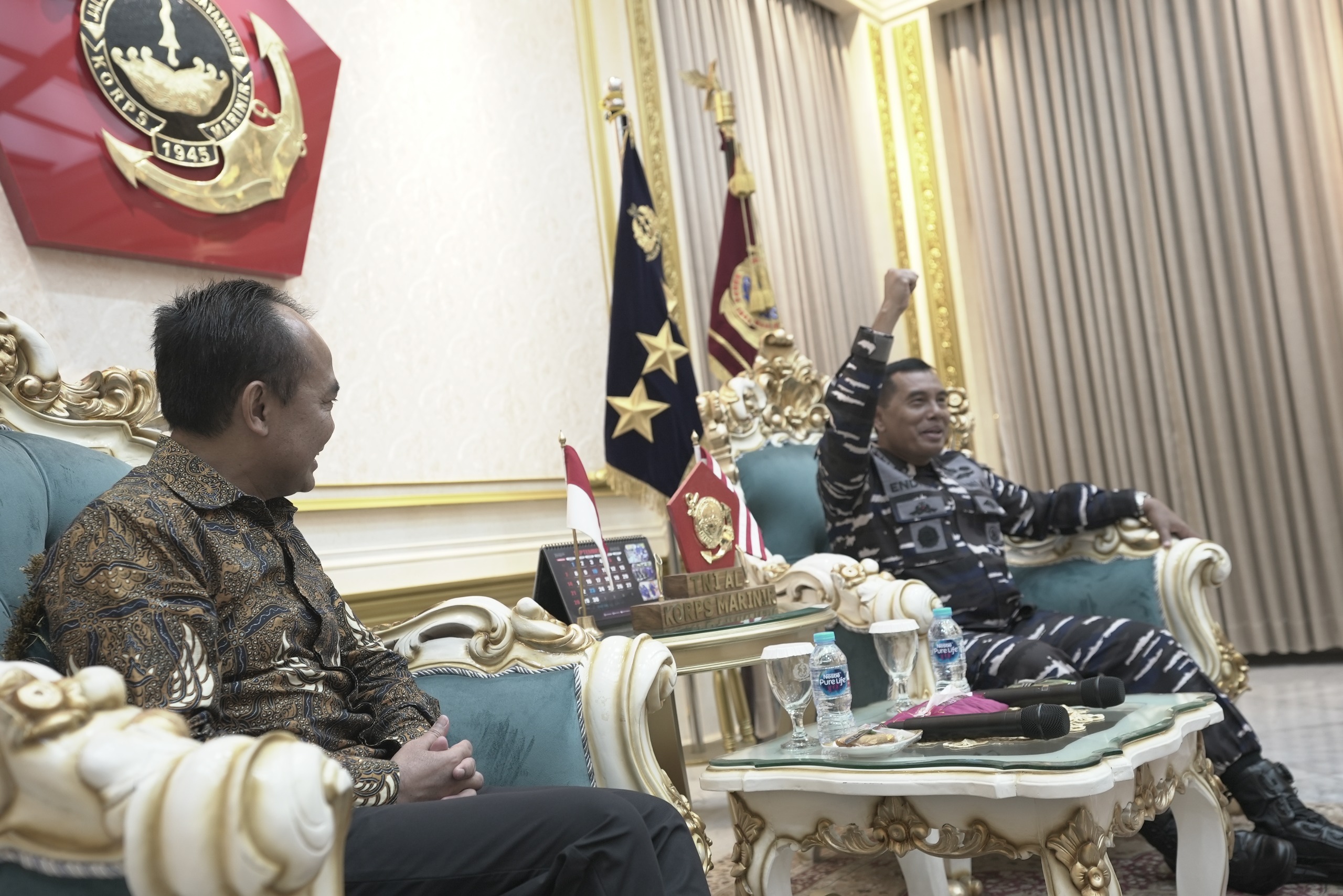 Dalam pertemuan tersebut, Pangkormar mengucapkan selamat datang dan terima kasih yang mendalam atas waktu yang diluangkan untuk berkunjung ke Markas Komando Korps Marinir. Kunjungan ini bertujuan untuk mempererat tali silaturahmi dan sinergi yang sudah terjalin dengan baik, serta membangun komunikasi dan kerja sama antara Korps Marinir dengan badan dan kementerian RI untuk kemajuan Korps Marinir di masa mendatang.