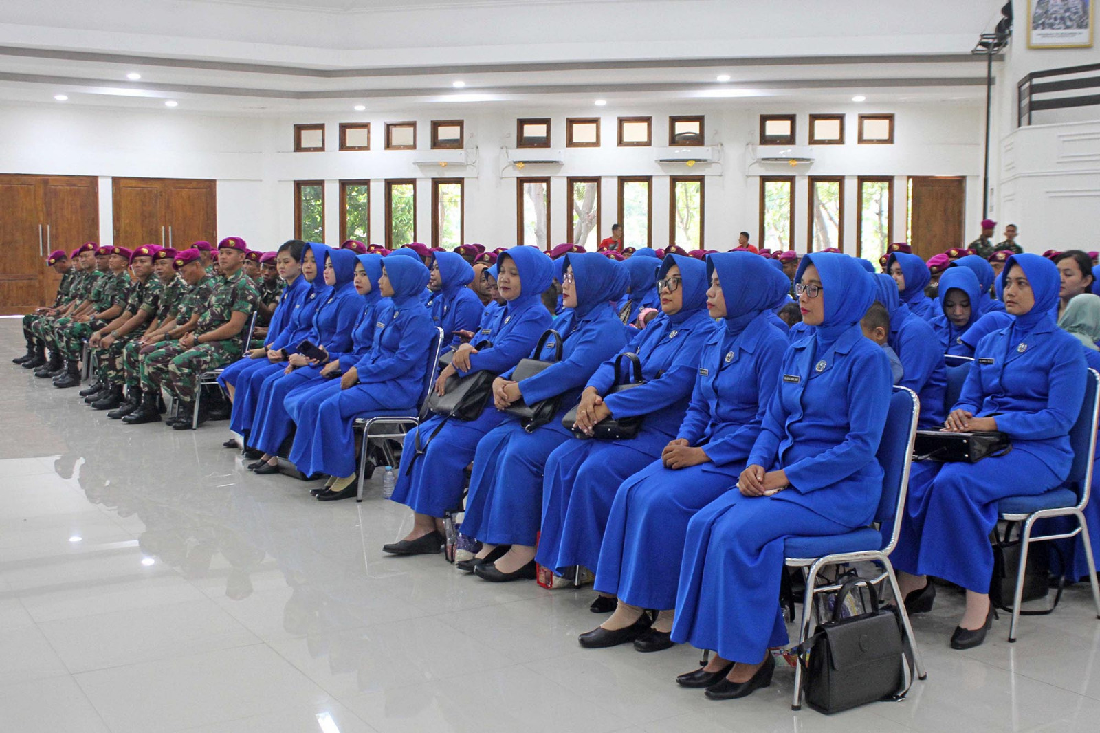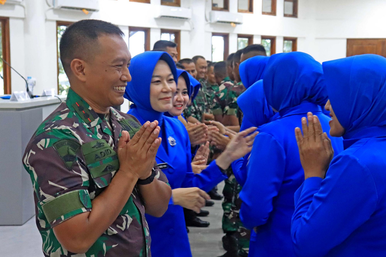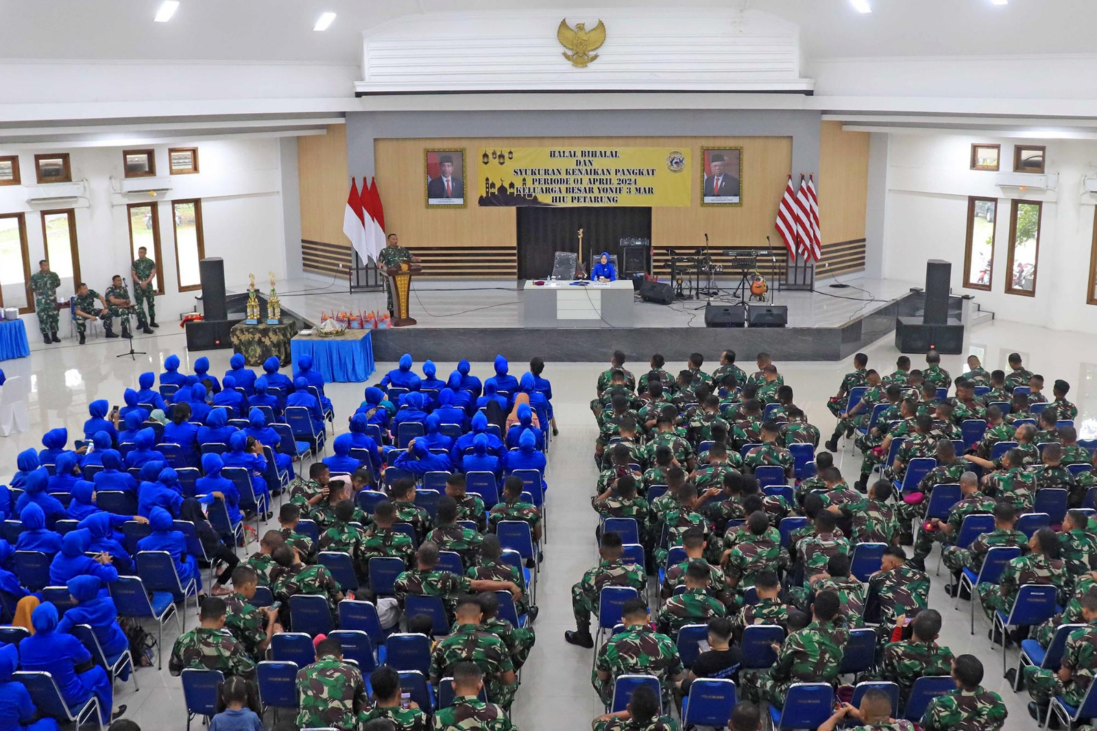 TNI AL, Dispen Kormar (Sidoarjo) Dalam rangka mempererat tali silaturahmi, Komandan Batalyon Infanteri 3 Marinir Letkol Marinir Adid Kurniawan Wicaksono, M.Tr.Opsla didampingi Ketua Ranting C Cabang 2 Korcab Pasmar 2 Ny. Adid Kurniawan Wicaksono melaksanakan halal bihalal dengan keluarga besar Batalyon Infanteri 3 Marinir di Bapra Edianto Kesatrian Marinir R. Suhadi Brigif 2 Marinir Gedangan, Sidoarjo, Jawa Timur. Selasa (23/04/2024).