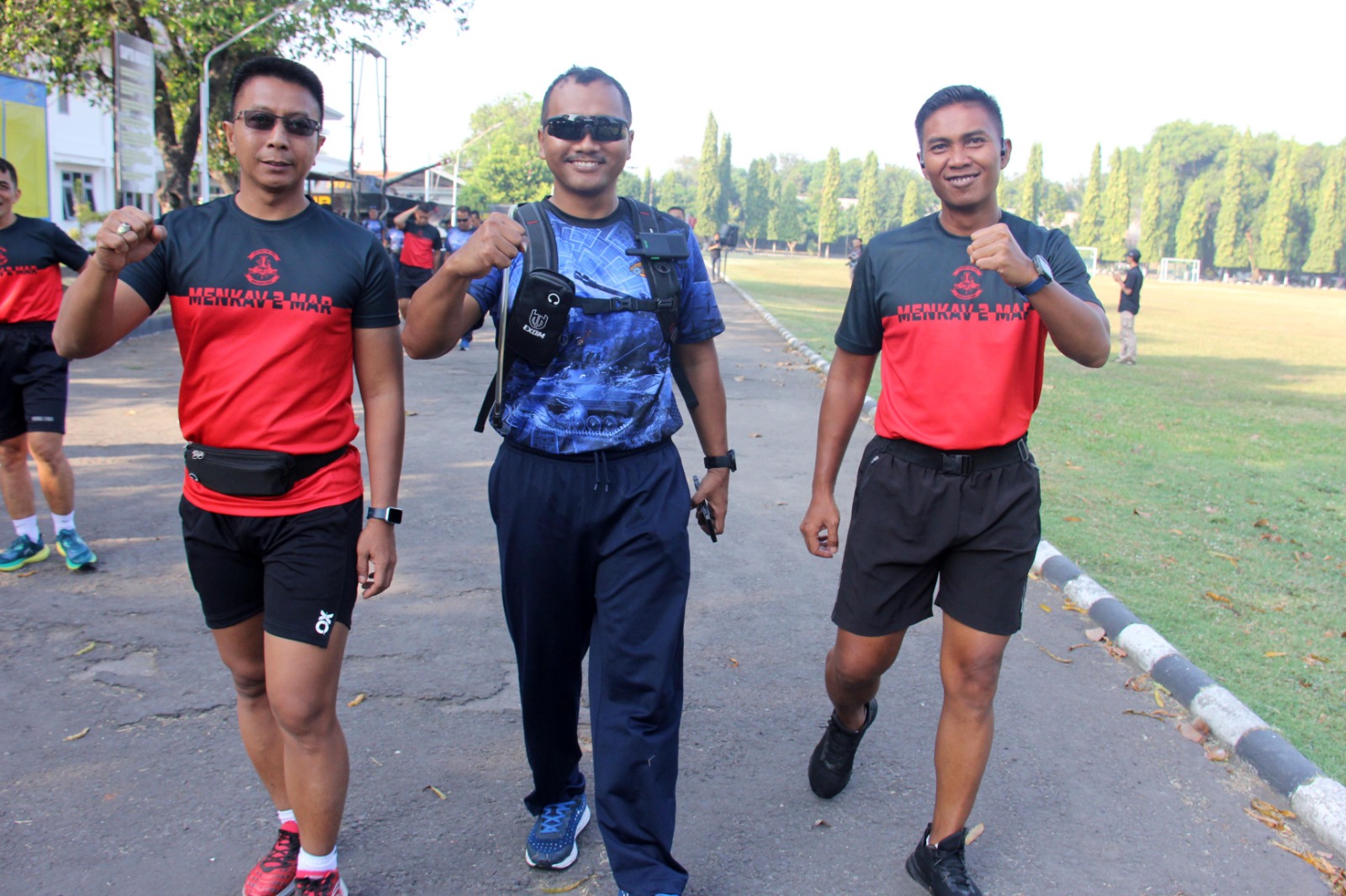 TNI Angkatan Laut, Dispen Kormar (Surabaya). Komandan Batalyon Kendaraan Pendarat Amfibi 2 Marinir (Danyonranratfib 2 Mar) Letkol Marinir Aloysius Y.N., M.Tr.Opsla, bersama seluruh Perwira jajaran Resimen Kavaleri 2 Marinir (Menkav 2 Mar) beserta Perwira jajaran Resimen Artileri (Menart 2 Mar) melaksanakan olahraga bersama yang dilaksanakan di Cavalry Sport Center (CSC), Trian Mar Soepraptono, Semarung, Ujung, Surabaya, Selasa (23/07/2024)