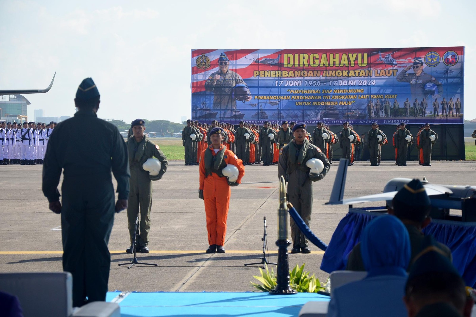Upacara peringatan HUT ke-68 Penerbangan TNI Angkatan Laut tahun 2024 dipimpin langsung oleh Kepala Staf Angkatan Laut (Kasal) Laksamana TNI Dr. Muhammad Ali, S.E., M.M., M.Tr.Opsla., dengan mengangkat tema âPuspenerbal Siap Mendukung Pembangunan Pertahanan TNI Angkatan Laut Yang Kuat Untuk Indonesia Majuâ.