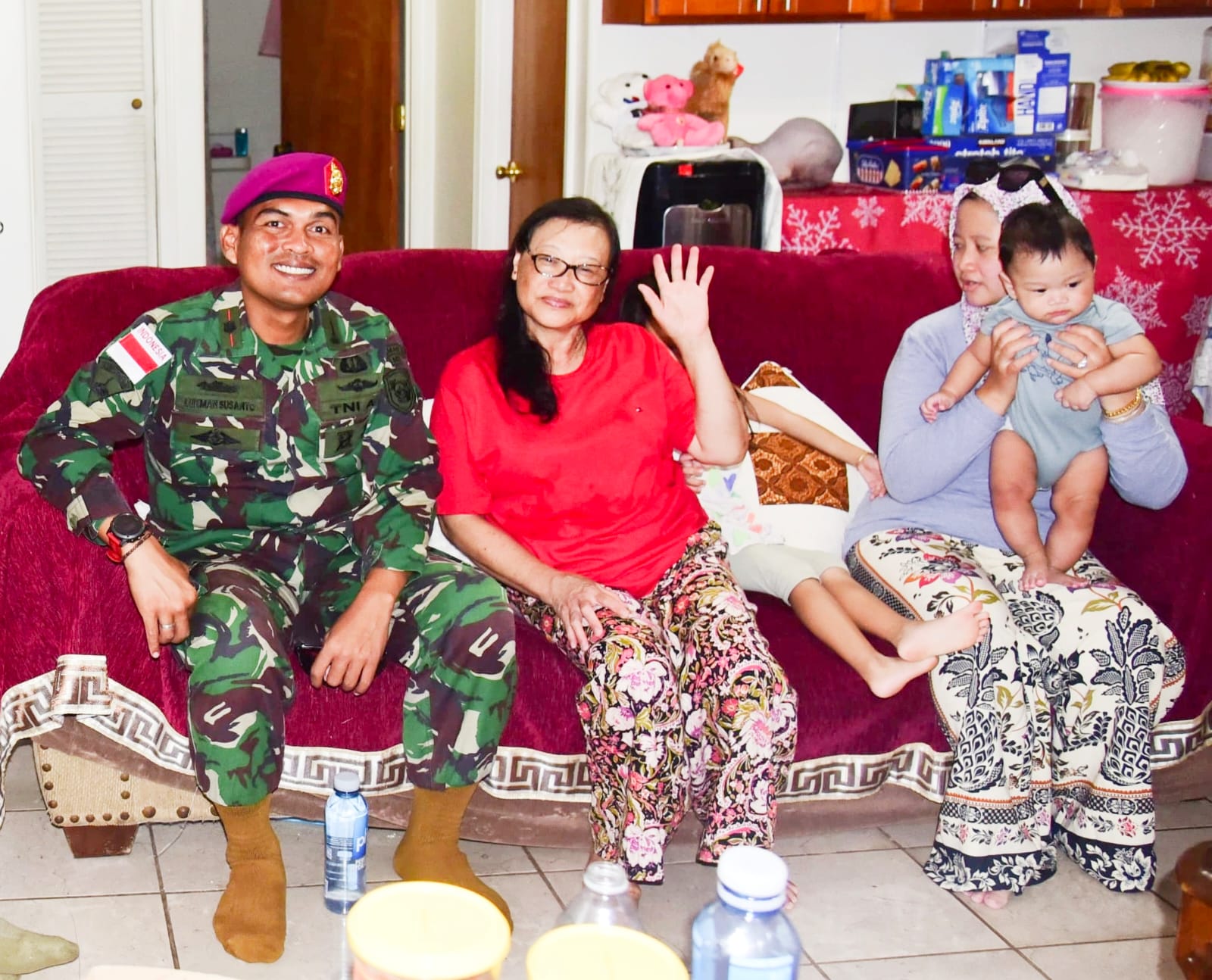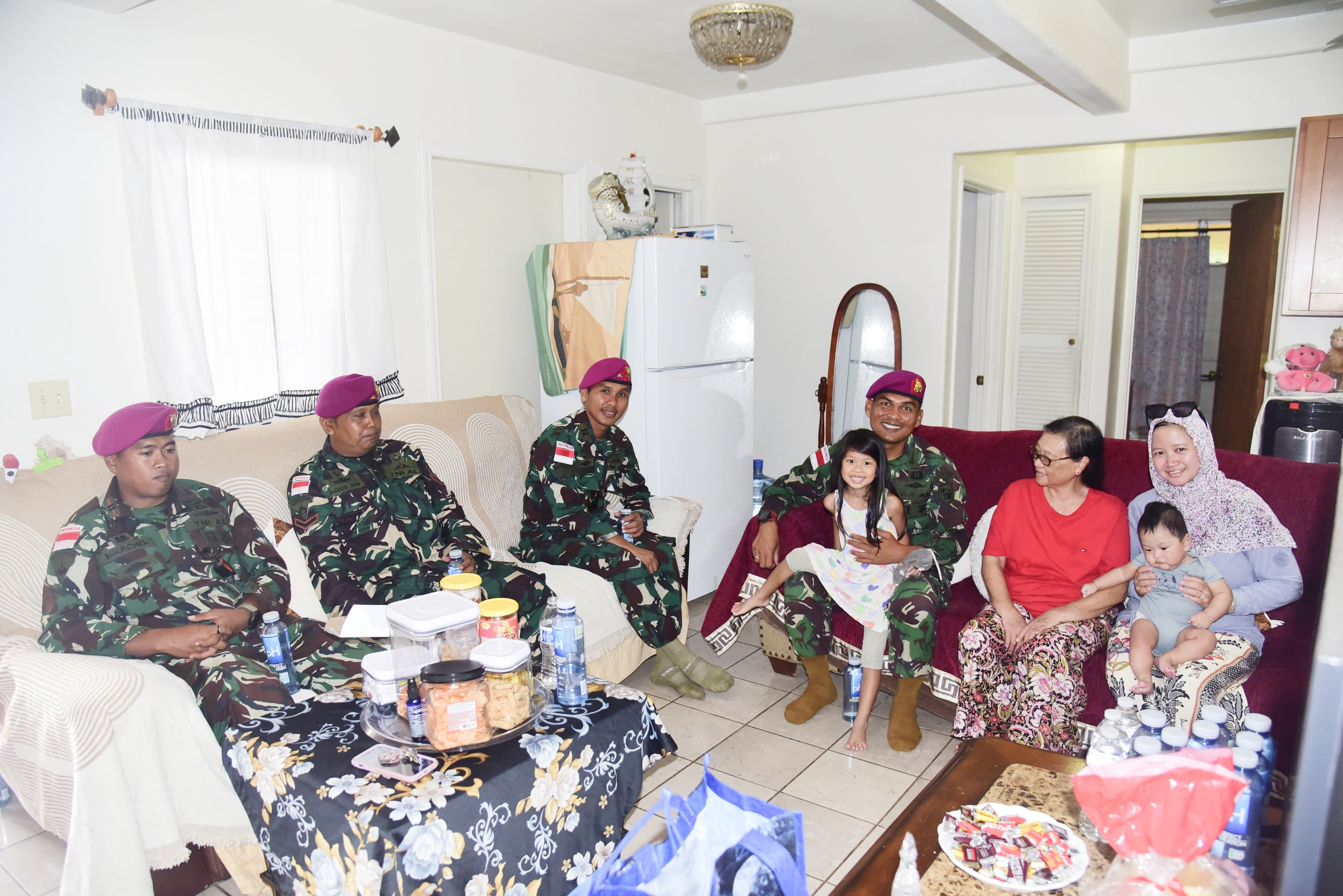 Dispen Kormar TNI Angkatan Laut (Hawaii). Sebelum kembali ke Indonesia Prajurit petarung Korps Marinir TNI Angkatan Laut yang tergabung dalam Satgas Latma Multilateral Rim of The Pacific (Rimpac) 2024, melaksanakan Anjangsana di kediaman Ibu Siti Fatimah, Warga Negara Indonesia yang menetap di Hawaii, Amerika Serikat, Rabu (31/07/2024).