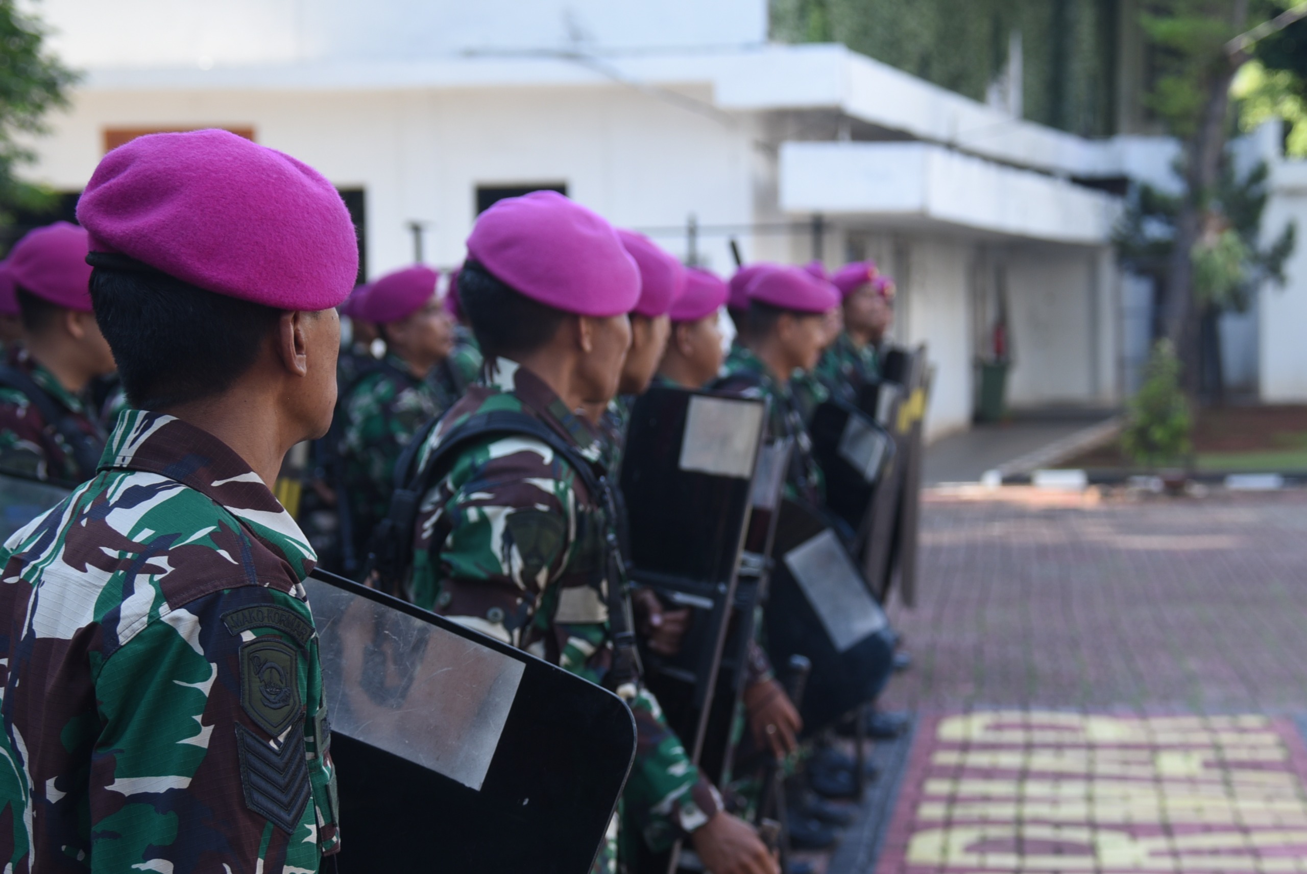 PRAJURIT MAKO KORMAR LAKSANAKAN APEL KESIAPSIAGAAN PENGAMANAN UNJUK RASA