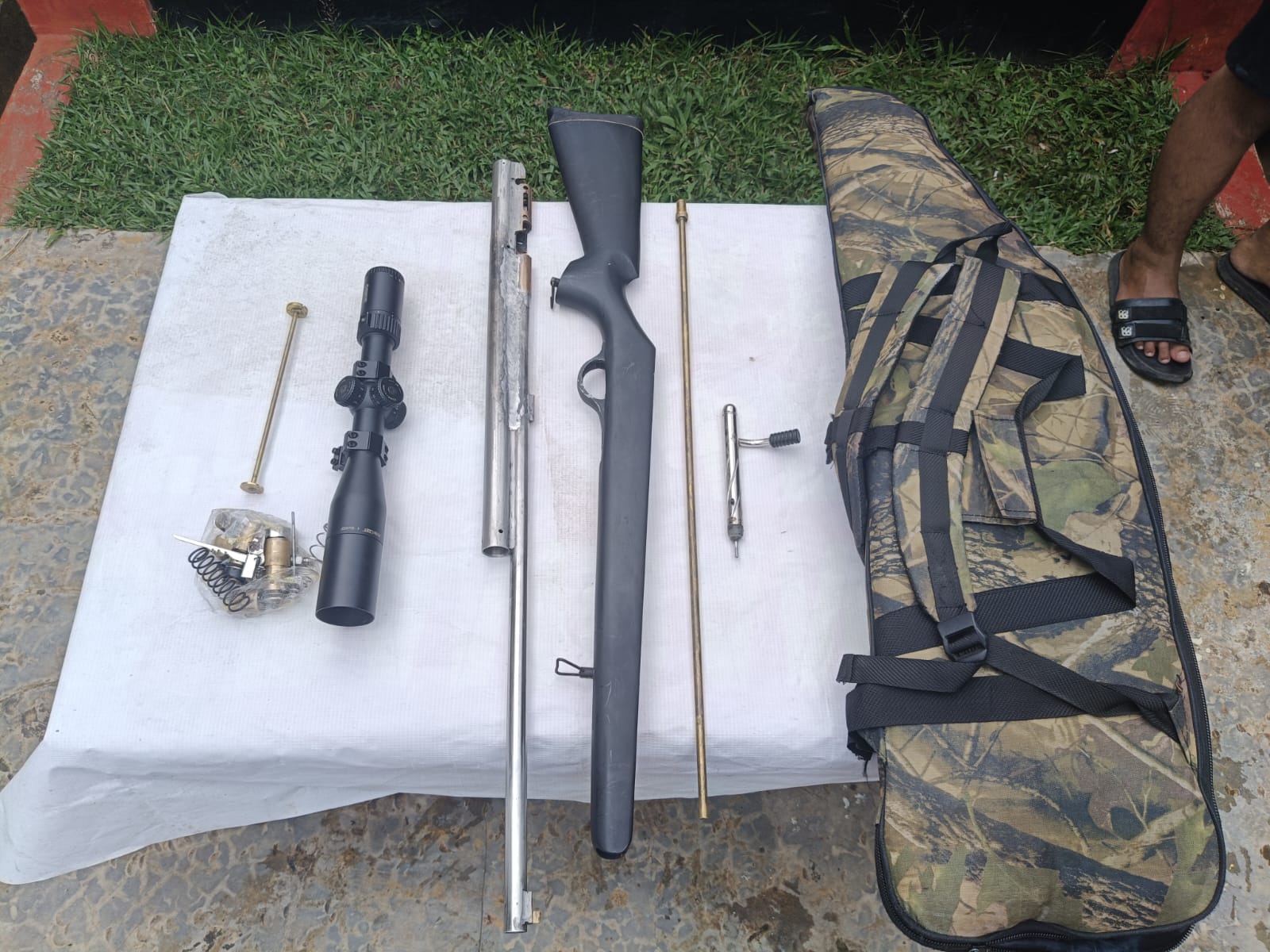 Pada pukul 11.35 WITA, saat tim sedang melakukan sweeping kendaraan, Danpos Bambangan, Peltu Marinir M. Pakis, mencurigai seorang pengemudi taksi berinisial AKL yang membawa tas besar menuju dermaga. Setelah dihentikan dan diperiksa, AKL mengaku bahwa ia hanya diminta untuk membawa senapan angin atas permintaan seseorang bernama Aji Kuning. Namun, setelah diperiksa lebih lanjut, tas tersebut ternyata berisi berbagai bagian senjata rakitan, seperti teleskop, laras kaliber 5,56 mm, dan komponen lainnya yang masih terpisah.