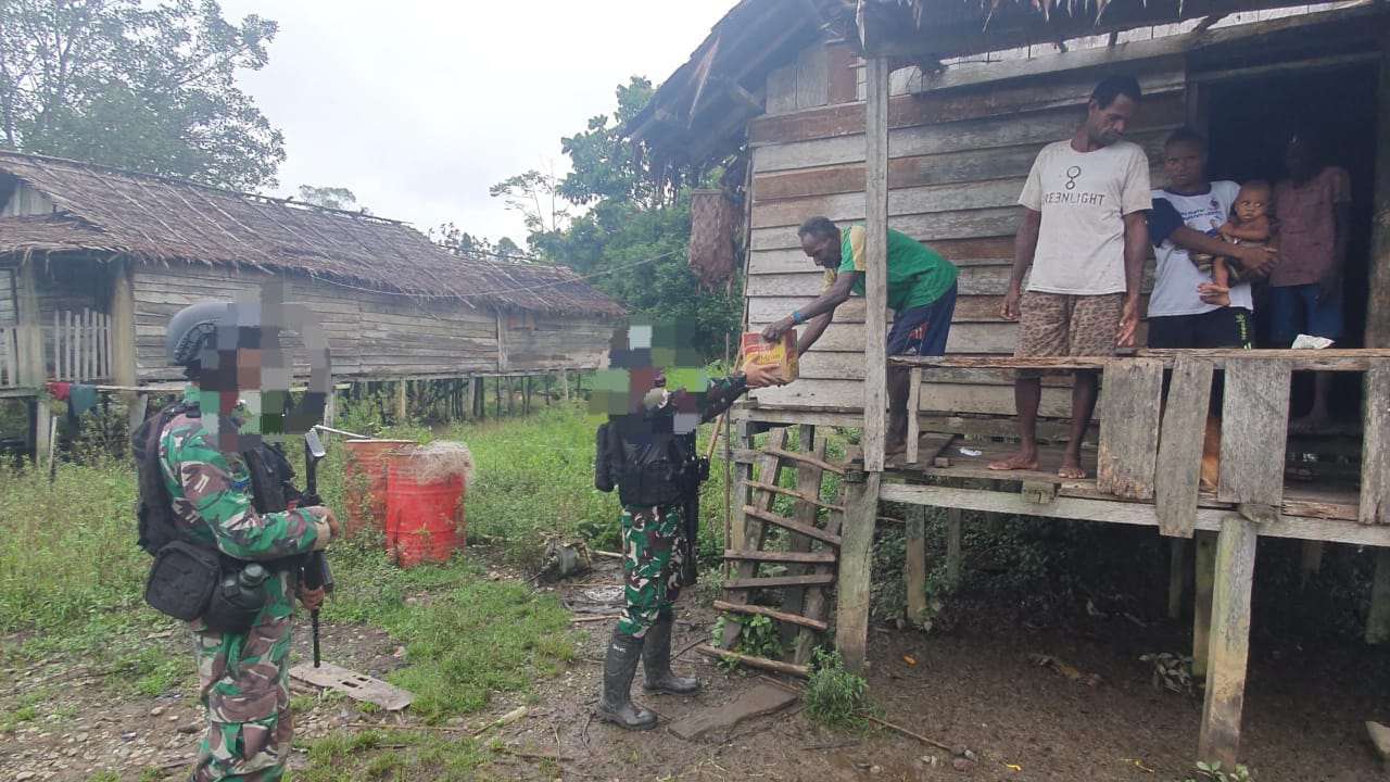 Dispen Kormar TNI Angkatan Laut (Yahukimo Papua Pegunungan). Satgas Pamtas Mobile RI-PNG melaksanakan pemberian sembako dan pegobatan secara terbatas kepada masyarakat kampung Pattipi, Selasa (21/05/2024).