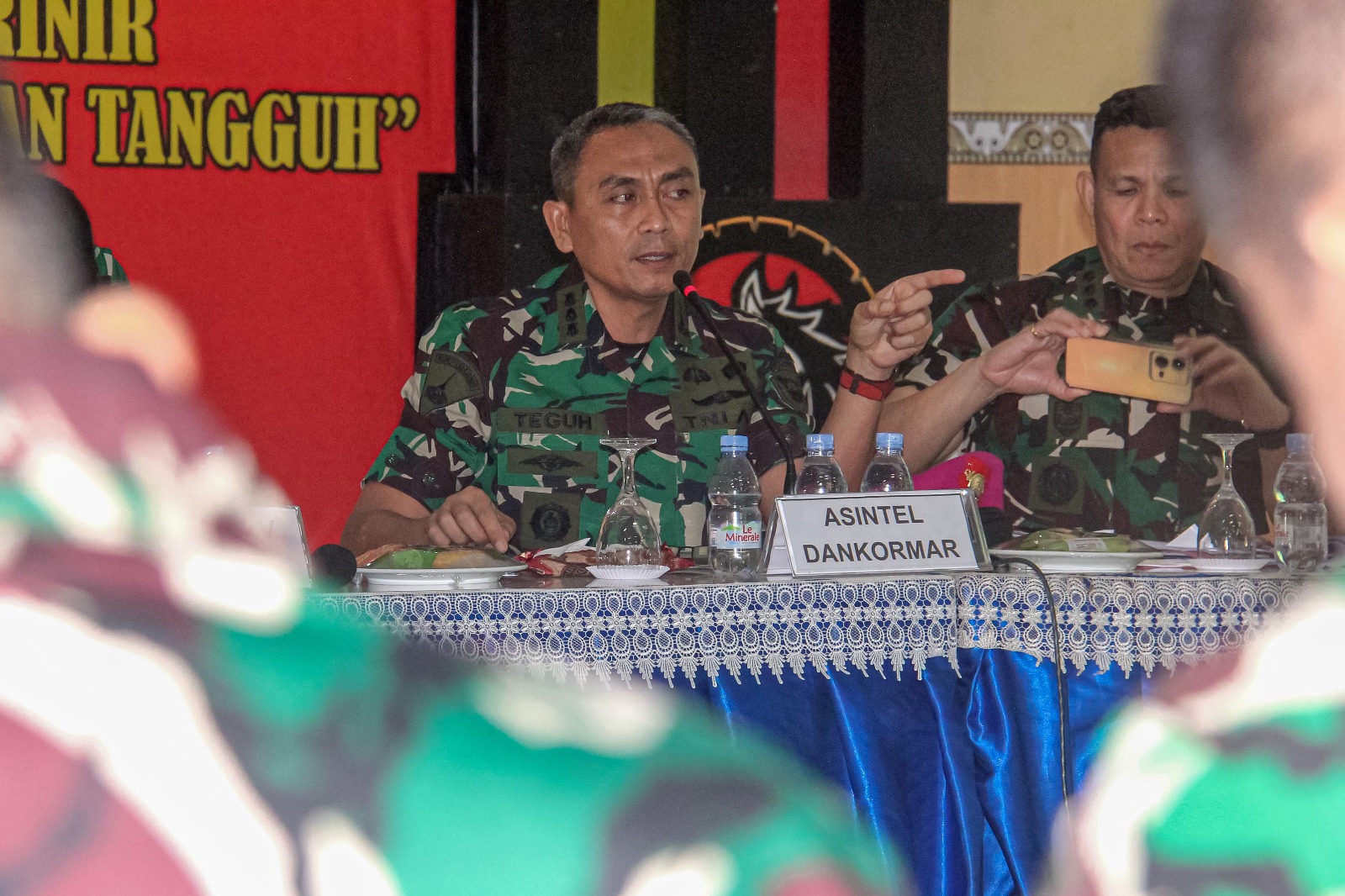 Kegiatan diawali penyampaian materi bidang intelijen oleh Asintel Dankormar Kolonel Marinir Teguh Santoso menyampaikan, dengan maraknya pemberitaan yang menyebutkan bahwa Indonesia sedang mengalami Darurat Judi Online dan Pinjaman Online, Asintel Dankormar menekankan seluruh agar menjauhi hal tersebut. Selain merugikan diri sendiri, juga memakan korban dari hutang yang menumpuk hingga kerugian personel. Selain itu, laksanakan pengamanan dinas jaga kesatrian sesuai standar prosedur dan bijak dalam bermedsos serta dilarang menggunakan aplikasi/website untuk prostitusi online, judi online dll, paling penting hindari menggunakan obat terlarang atau Narkoba.