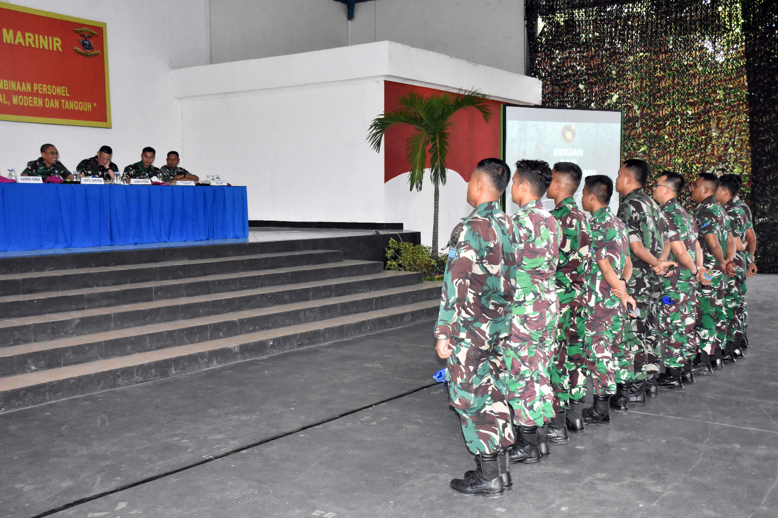 TNI AL. Dispen Kormar (Surabaya). Dalam rangka pencegahan dan deteksi dini terhadap potensi pelanggaran kedinasan, segenap Prajurit Resimen Artileri 2 Marinir (Menart 2 Mar) mengikuti Safari Personel yang diselenggarakan oleh Korps Marinir bertempat di Indoorsport Ksatrian Marinir Soetedi Senaputra, Karangpilang - Surabaya, Selasa. (23/04/2024).