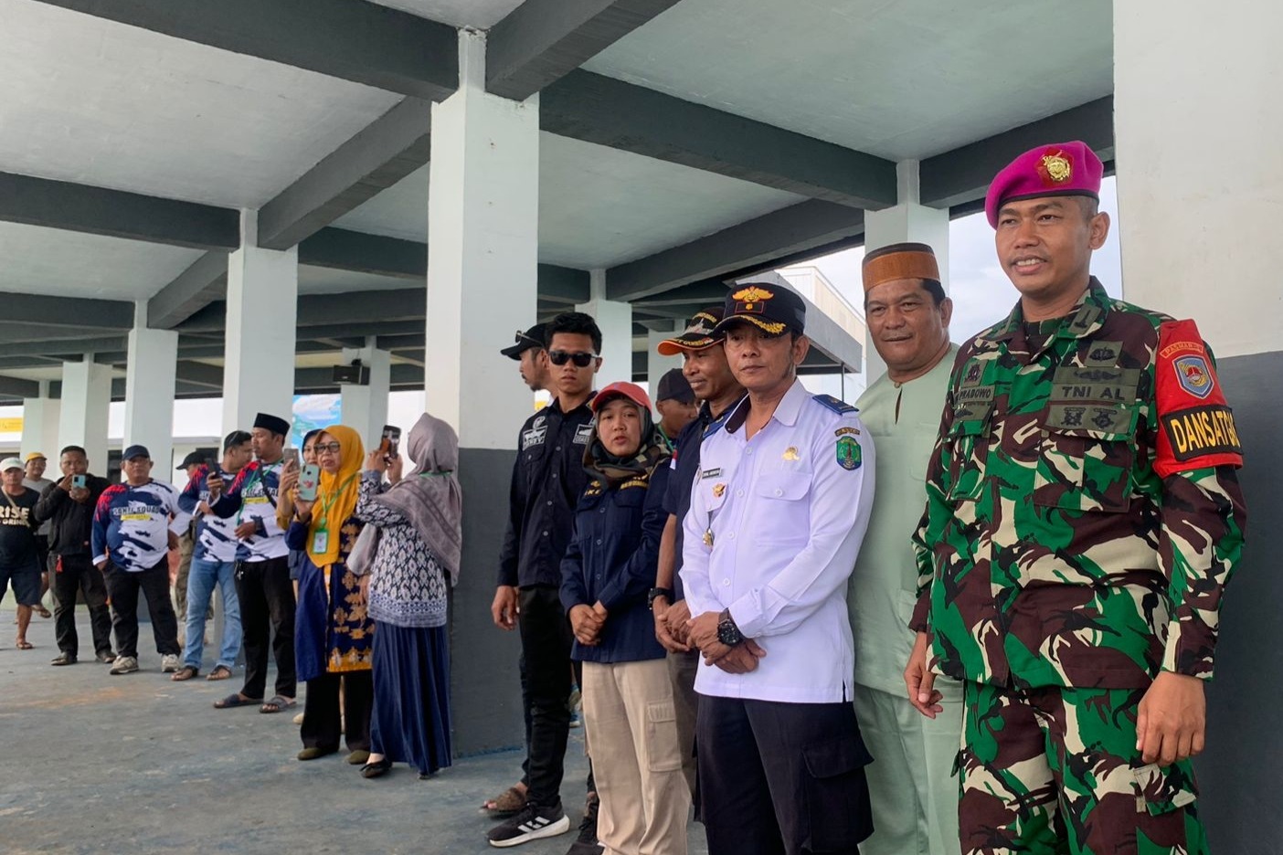 Dispen Kormar, TNI AL (Nunukan). Prajurit Pasmar 2 Korps Marinir yang tergabung dalam Satgasmar Pam Ambalat XXX melaksanakan pengamanan Penjemputan Haji asal Pulau Sebatik, Nunukan pada Musim Haji 1445 H/2024 M bertempat di Pelabuhan Pos Lintas Batas Negara (PLBN) Sei Pancang, Sebatik, Nunukan, Kalimantan Utara. Jumat (05/07/2024).