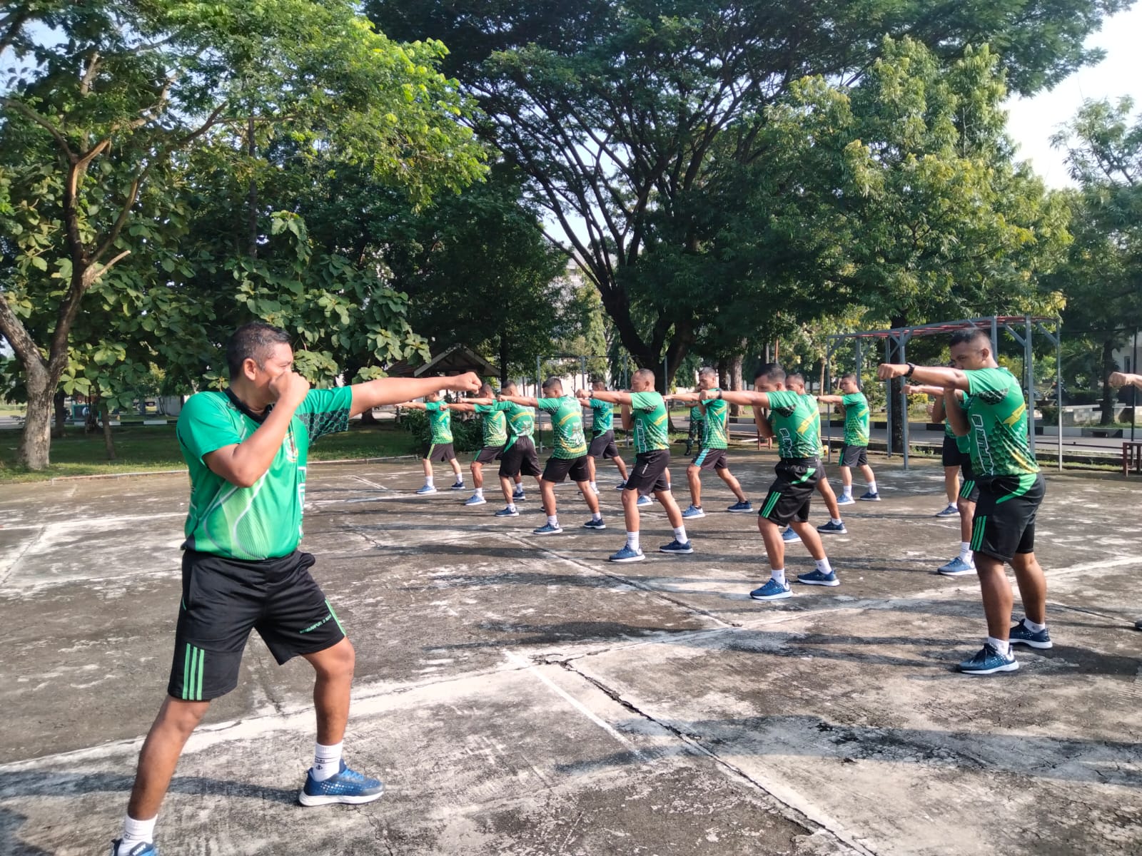 Kegiatan ini diawali dengan apel pagi dilanjutkan pemanasan lari pagi dan dilanjutkan latihan dengan beladiri Chadrick.