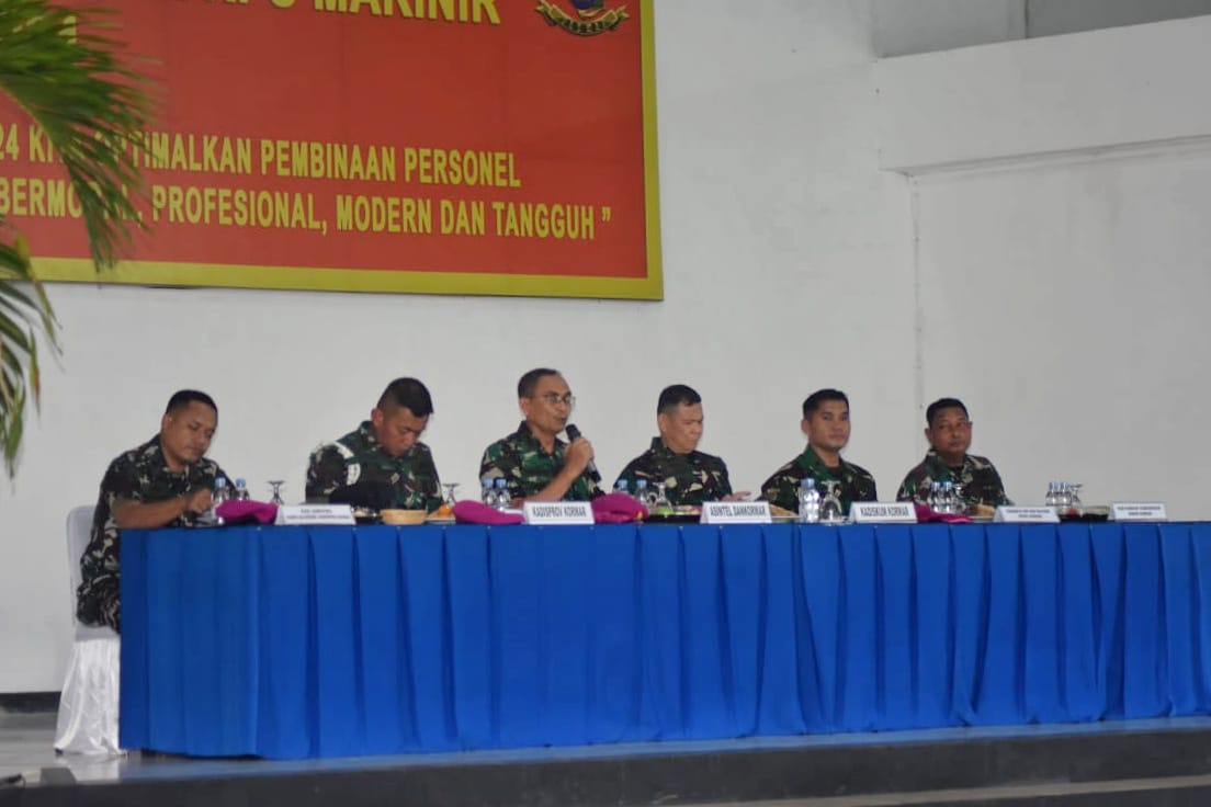 TNI AL, Dispen Kormar (Surabaya). Segenap prajurit Batalyon Perbekalan dan Peralatan 2 Marinir bersama prajurit jajaran Pasmar 2 mengikuti kegiatan safari pers Korps Marinir TA. 2024 bertempat di Indoor Sport Kesatrian Marinir Soetedi Senaputra Karangpilang, Surabaya. Selasa (23/04/2024).