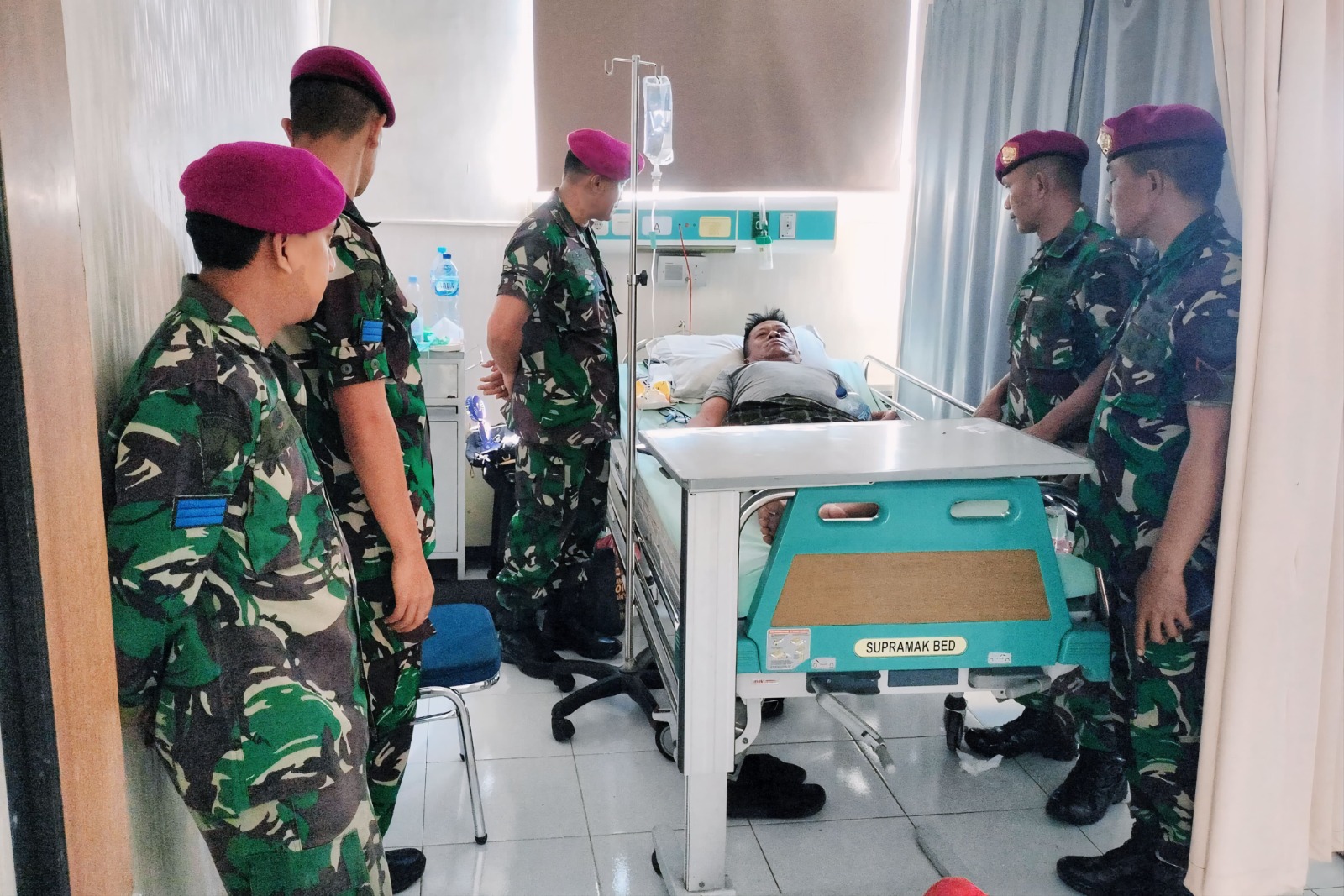 Kunjungan ini dilaksanakan oleh Danton 2 Kompi Bek Yonbekpal 2 Marinir MLetda Marinir S. Supriyanto beserta perwakilan Bintara dan Tamtama untuk memastikan perkembangan kesehatan dari Serda Marinir Suyoto dan Koptu Marinir Warsidi.