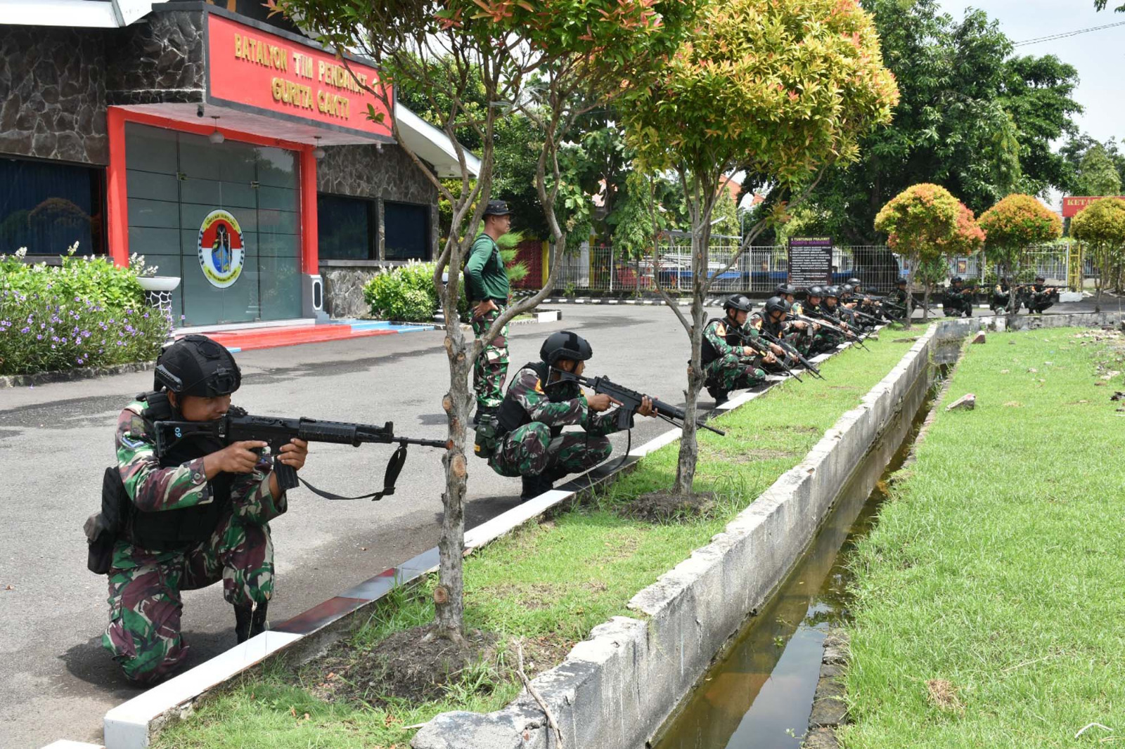 âLaksanakan drill dengan sungguh-sungguh dan semangat, perhatikan instruksi dari pelatih serta utamakan faktor keselamatan baik personel maupun material, drill taktis operasi darat tersebut tujuan untuk memelihara dan mempertahankan serta meningkatkan Disiplin Tempur, kemampuan taktik dan tehnik bertempur, perorangan maupun dalam hubungan Regu, Peleton Kompi Dan Batalyon,â ujar Danyonif 5 Mar.