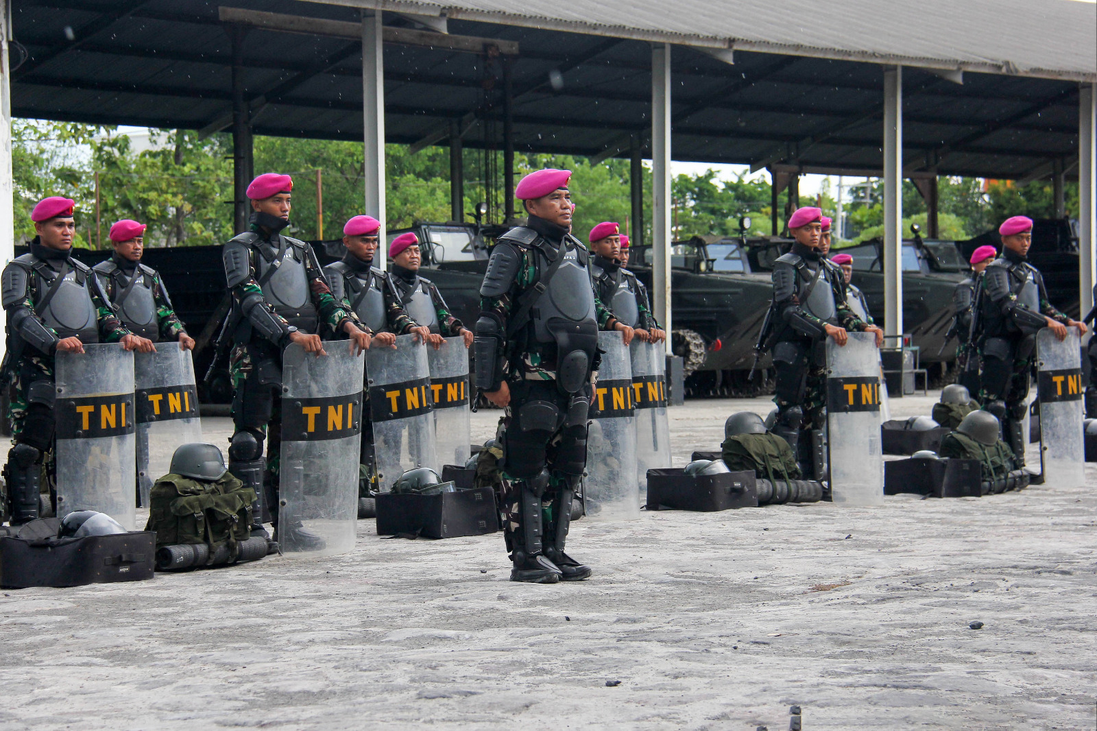 TNI Angkatan Laut, Dispen Kormar (Surabaya). Dalam rangka persiapan menyambut pelaksanaan Pemilihan Kepala Daerah (Pilkada) serentak tahun 2024, Prajurit Kesatria Perkasa Batalyon Kapa 2 Marinir mengikuti apel kesiapan pasukan yang berlangsung di Garase kendaraan tempur Kesatrian Marinir Soepraptono, Semarung, Ujung Surabaya. Senin (18/11/2024)