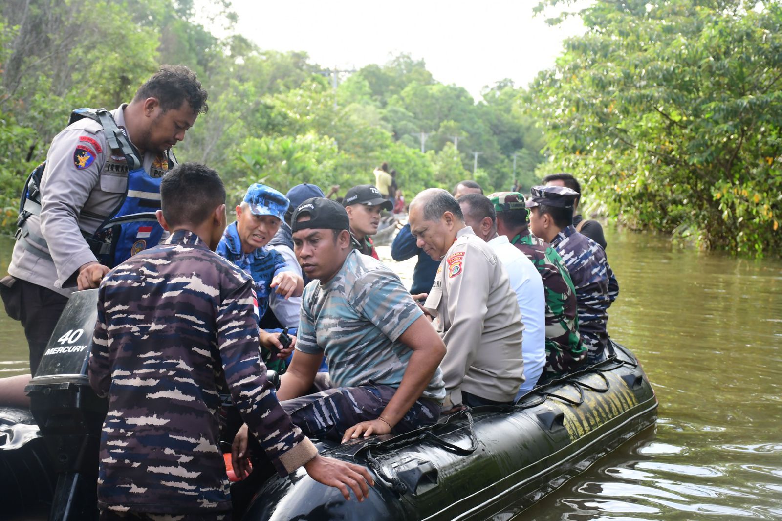 Kegiatan membantu evakuasi dan penyaluran bantuan kepada masyarakat dilaksanakan dengan semua komponen masyarakat, juga mendukung rombongan Pj Gubernur Papua Selatan, Apolo Safanpo, ST., M.T., IPM melaksanakan peninjauan lokasi banjir.