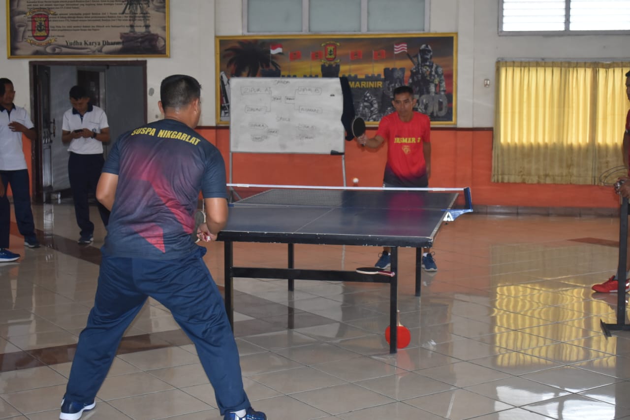 Sambut Meriah jelang HUT Yonzeni 2 Mar Gelar Lomba Tenis Meja Antar Kompi