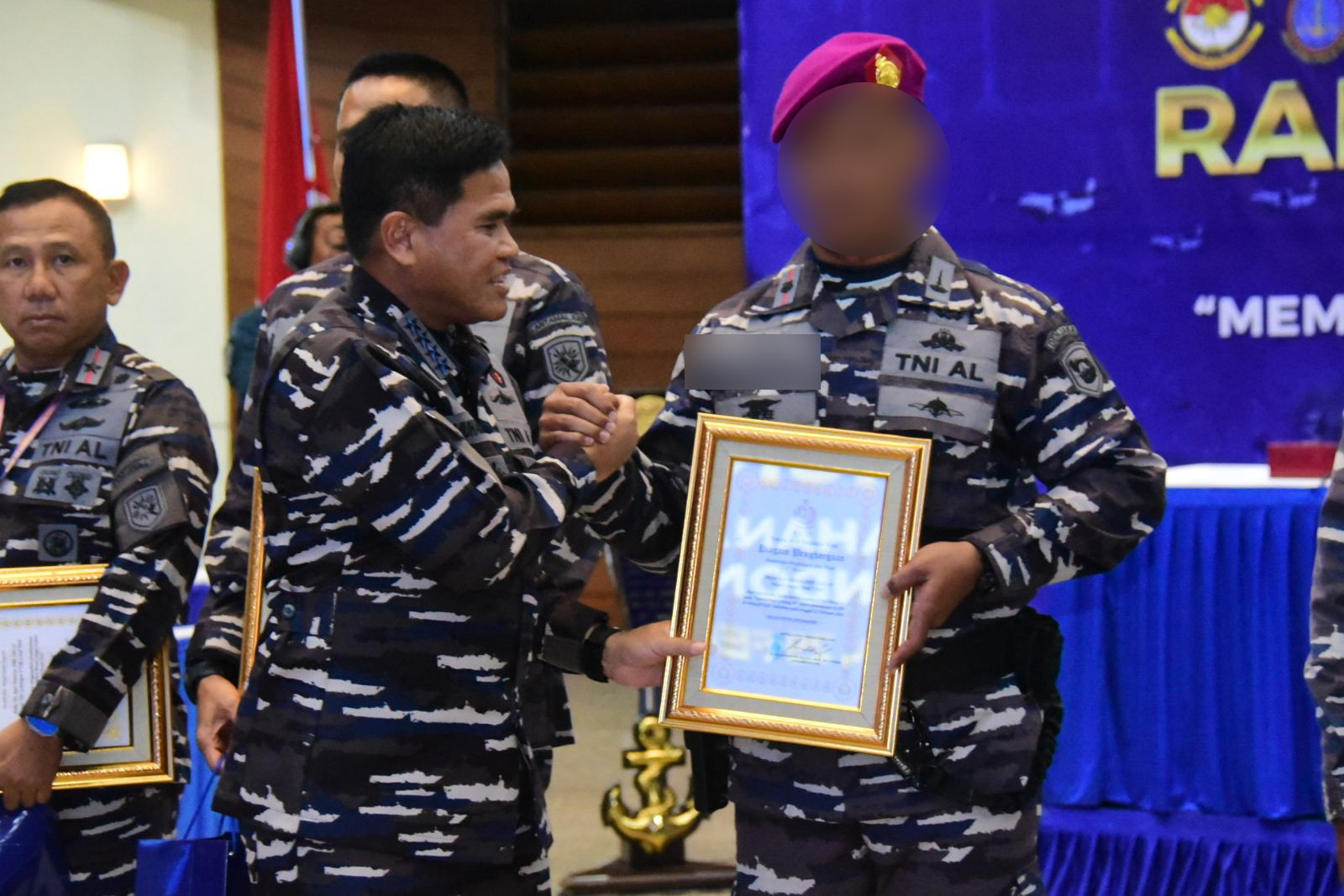 Adapun perwakilan yang menerima penghargaan dari Kasal tersebut adalah Wakil Komandan Satuan Tugas (Wadan Satgas) "Gobang" Pamtas Mobile RI-PNG Yonif 7 Marinir bersama dengan lima Prajurit Petarung lainnya.