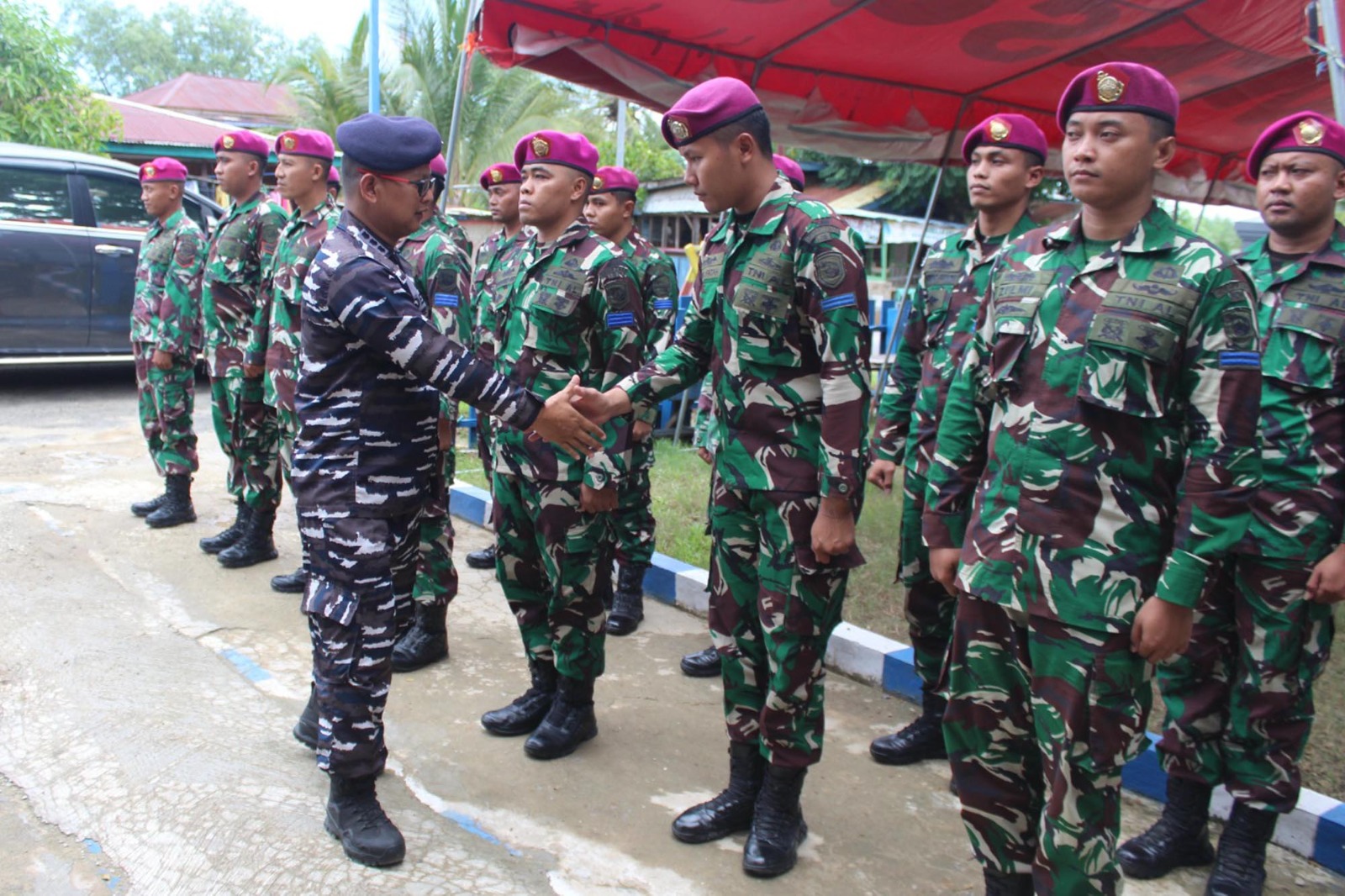 TNI AL, Dispen Kormar (Nunukan). Satgasmar Pam Ambalat XXIX menerima kunjungan kerja Asops Danguspurla Koarmada II Kolonel Laut (P) Dedi Wardana S.T.,M.Tr.Hanla di Kecamatan Sebatik, Kabupaten Nunukan, Kalimantan Utara. Senin (24/06/2024).
