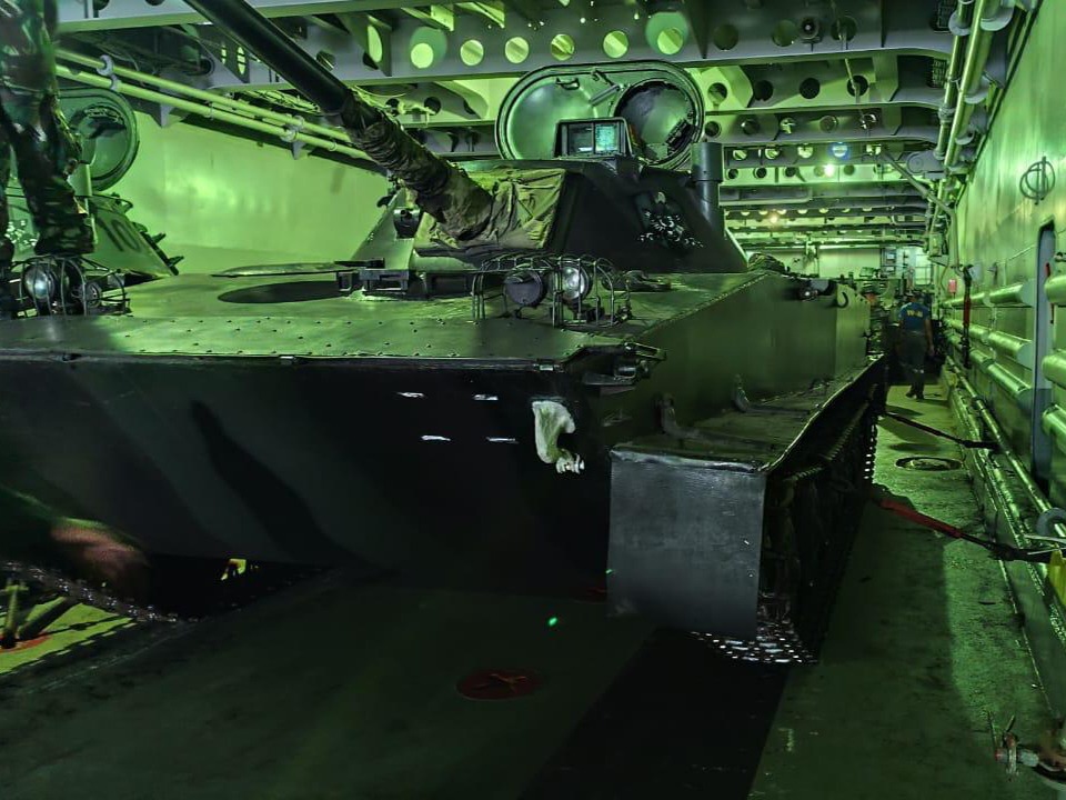 TNI Angkatan Laut, Dispen Kormar (Surabaya). Dalam rangka melaksanakan pengamanan maritim perairan Indonesia, prajurit dan Kendaraan Tempur (Ranpur) Tank PT 76(M) Batalyon Tank Amfibi 2 Marinir siap berlayar dan bertempur On Board di Kapal Perang Republik Indonesia Teluk Ende-517 (KRI TLE-517), melaksanakan Satgas Operasi Trisila-24 Periode III TA 2024 di dermaga Ujung Koarmada II Surabaya. Rabu (03/07/2024).