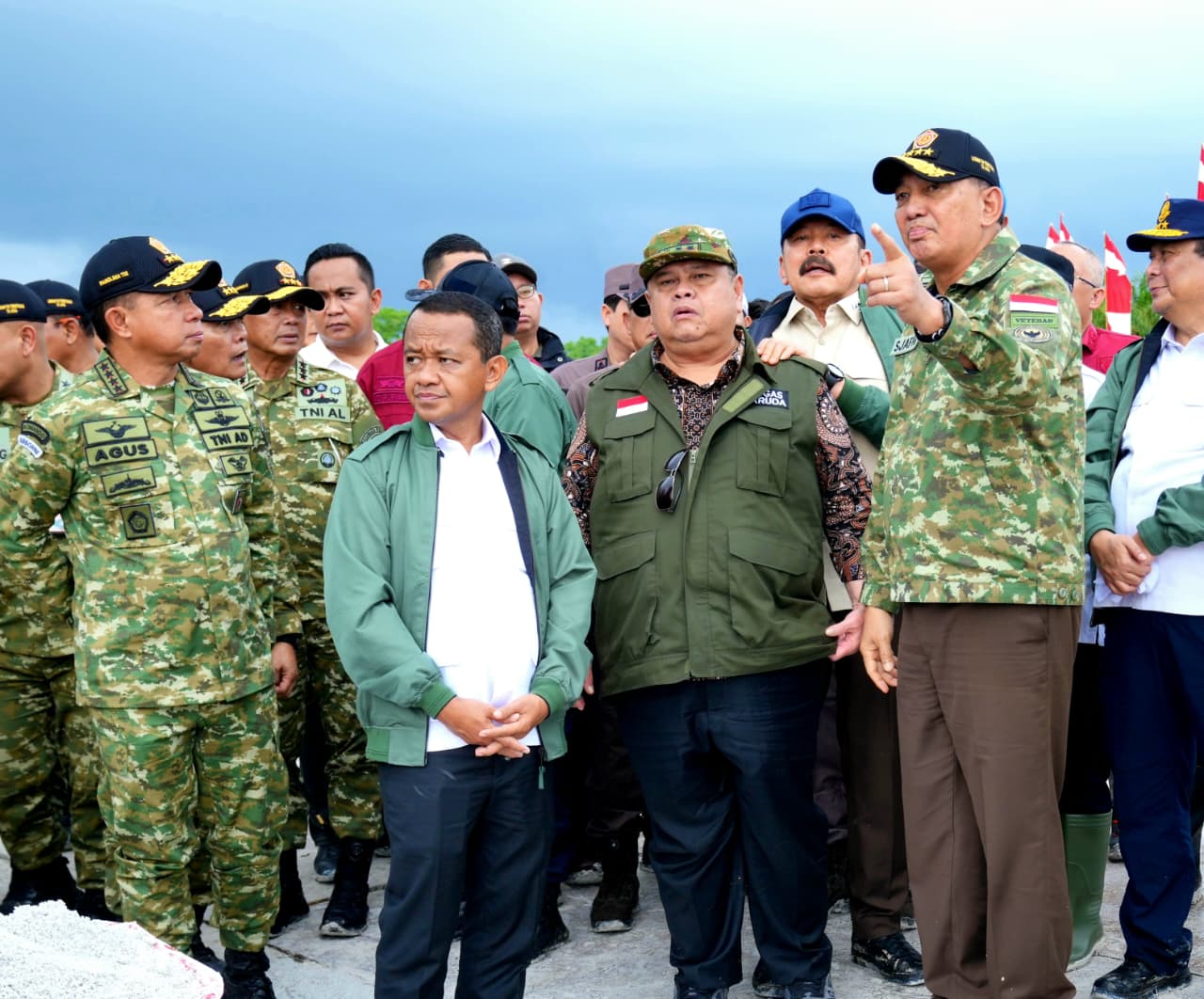 Peninjauan itu dilakukan di titik tinjau di Desa Mabat, Bangka. Selain Menhan dan Panglima TNI, Jaksa Agung ST Burhanuddin, Menteri ESDM Bahlil Lahadalia, hingga Kepala BPKP Muhammad Yusuf Ateh hadir dalam kegiatan tersebut.