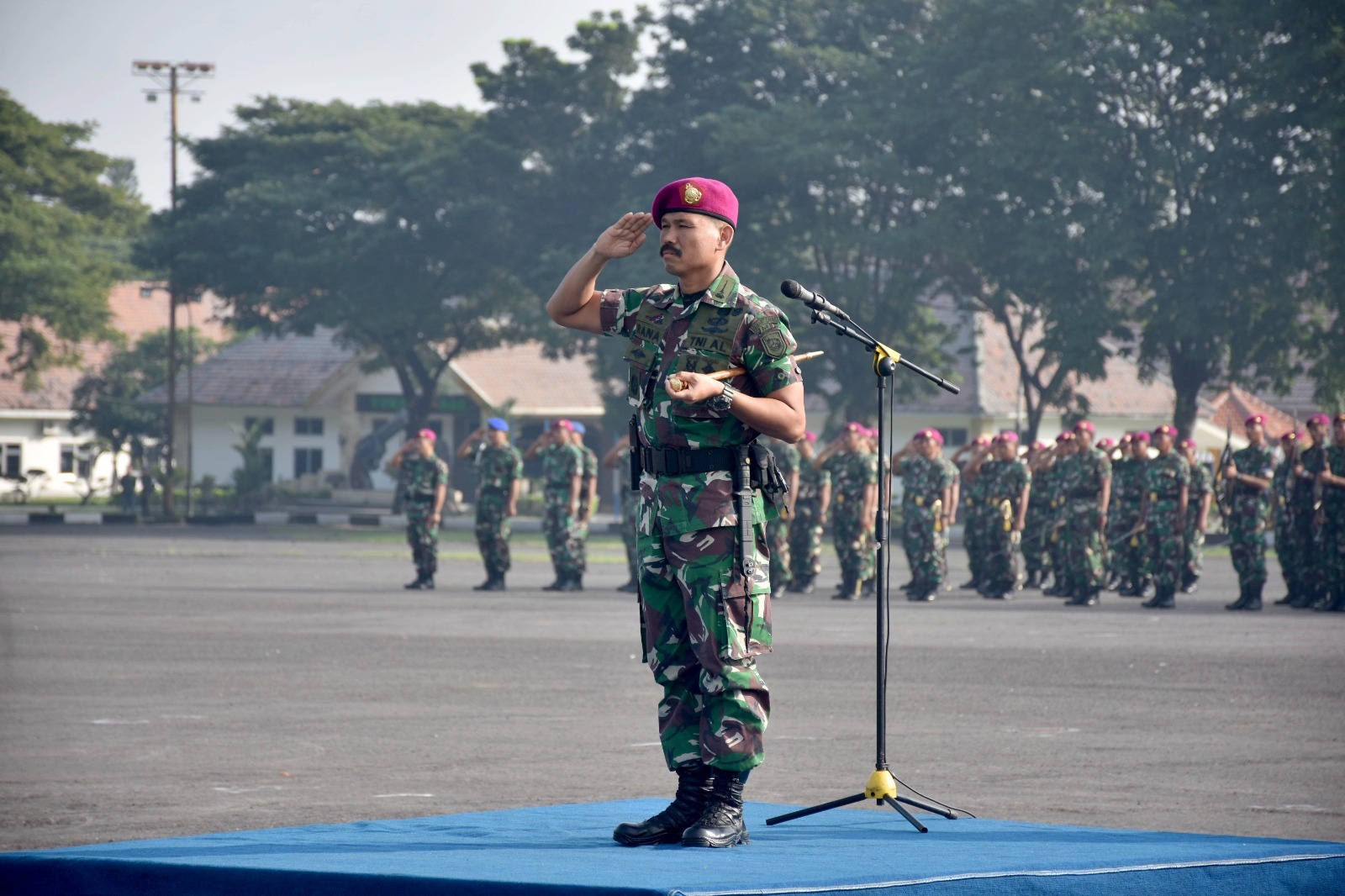 TNI AL. Dispen Kormar (Surabaya). Di awal kepemimpinannya Komandan Resimen Artileri 2 Marinir (Danmenart 2 Mar) Kolonel Marinir Rana Karyana, S.E., M.Tr.Opsla., M.M., CHRMP bertindak selaku Inspektur Upacara pada Upacara penaikan bendera Merah Putih Senin Minggu ke IV bulan April bertempat di Lapangan Apel Kesatrian Marinir Sutedi Senaputra, Karangpilang â Surabaya. Senin (29/04/2024).