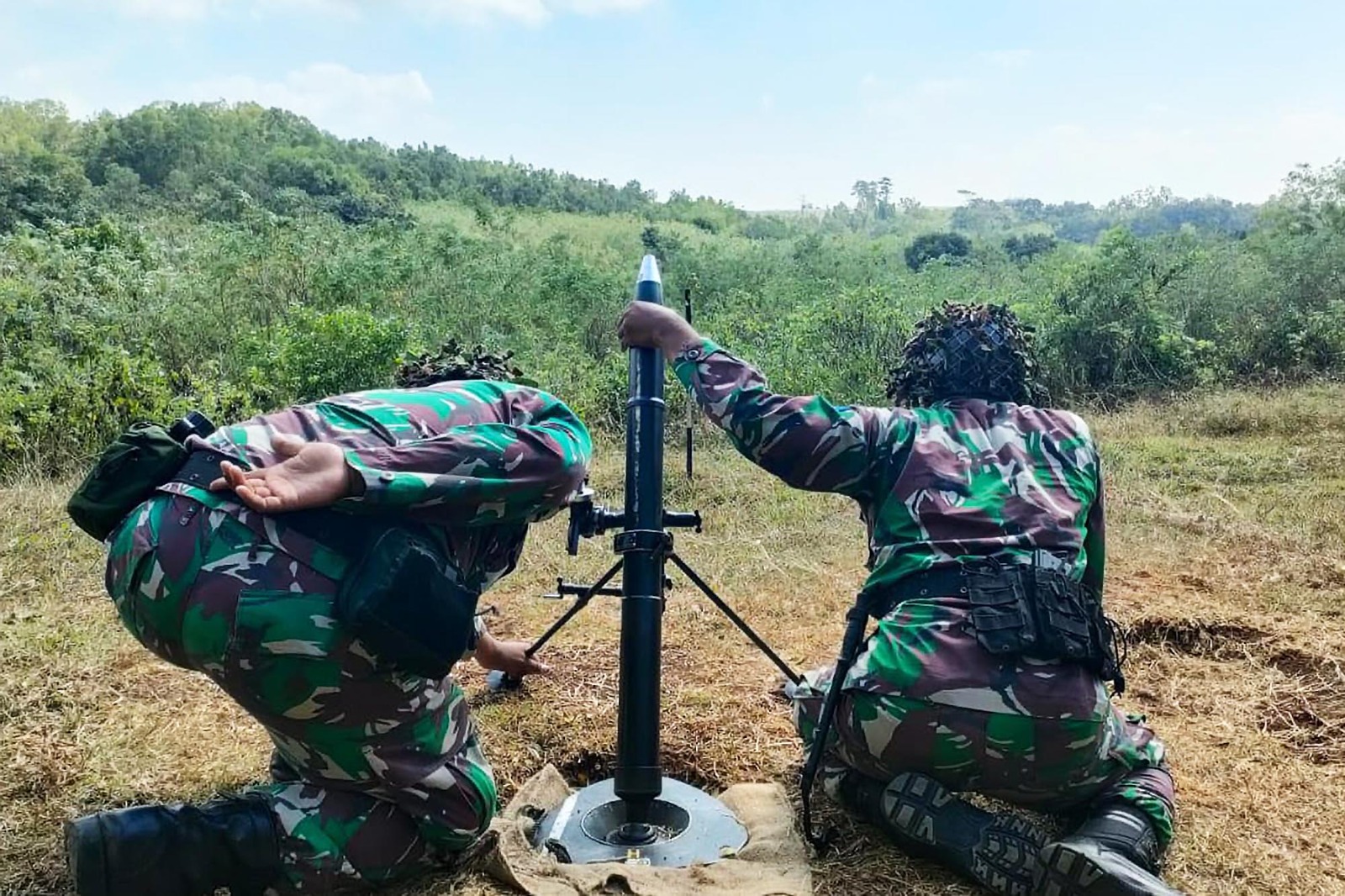 TNI AL, Dispen Kormar (Malang) Peleton Bantuan (Tonban) Brigif 2 Marinir memberikan bantuan tembakan Mortir 60 mm pada Latihan Satuan Dasar (LSD) II dan Latihan Satuan Lanjutan I TA. 2024 Brigif 2 Marinir di Pusat Latihan Tempur Marinir 4 Purboyo, Malang, Jawa Timur. Sabtu (01/06/2024).