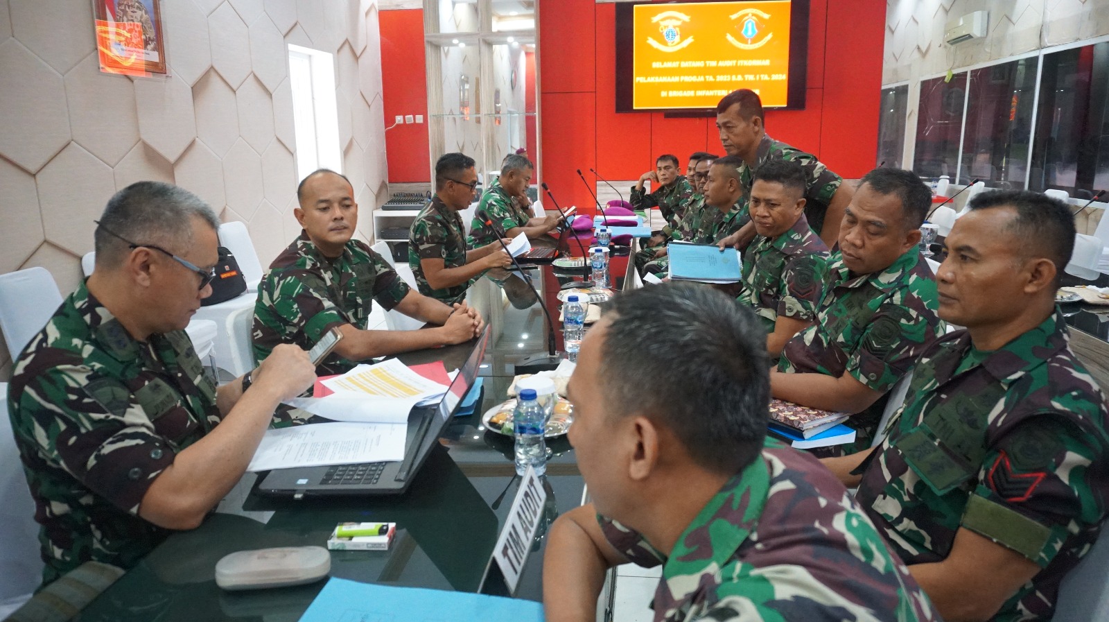 Komandan Brigade infanteri-1 Marinir (Danbrigif-1 Mar) Kolonel Marinir Isna Muksin Abdilah, M. Tr. Hanla., S.E menerima Tim Wasrik dari Inspektorat Korps Marinir (Itkormar) di ruang rapat Brigif-1 Marinir Cilandak Jakarta Selatan.