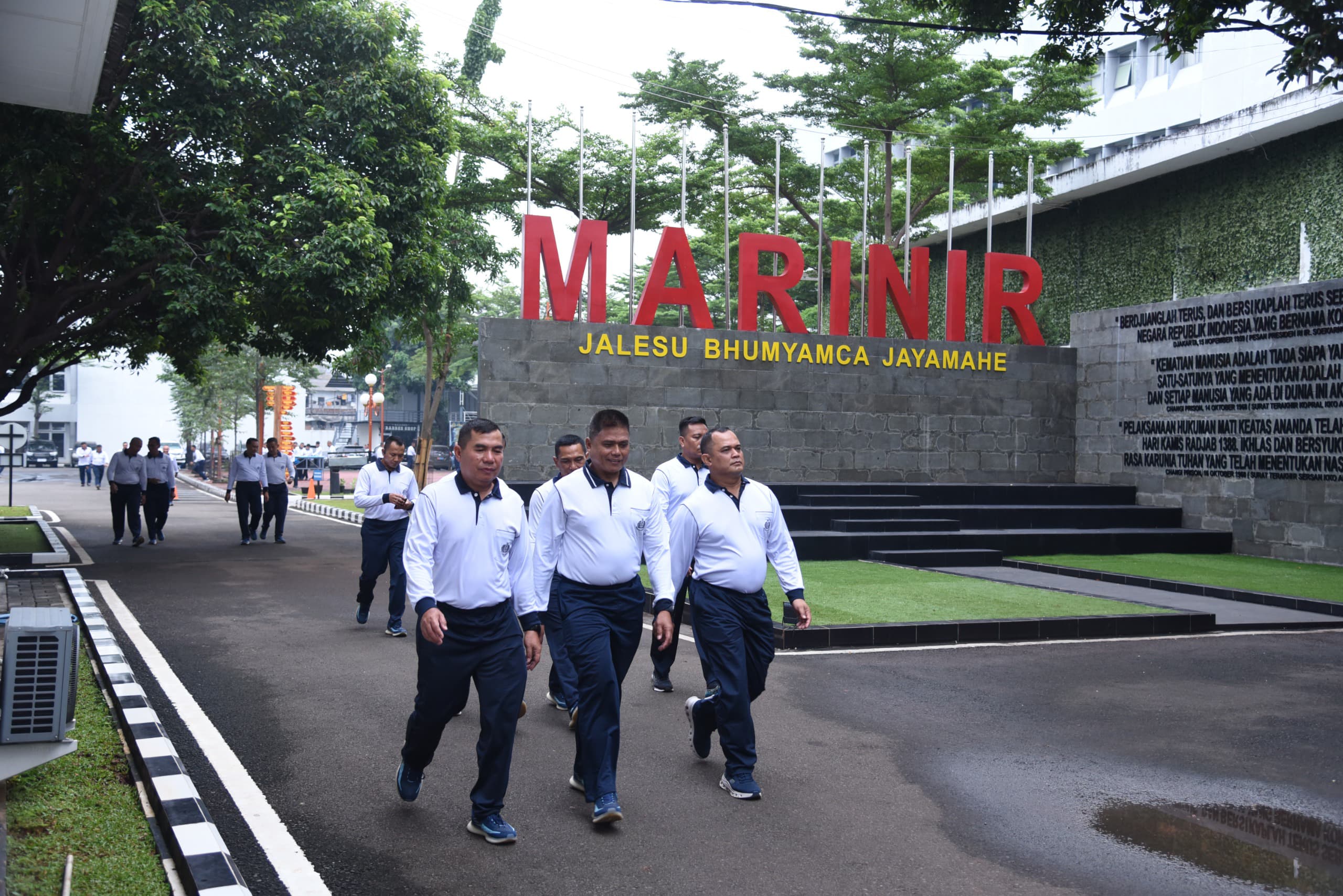 Dispen Kormar TNI Angkatan Laut (Jakarta). Guna menjaga kebugaran dan meningkatkan semangat kinerja, Wakil Komandan Korps Marinir (WadanKormar) Brigadir Jenderal TNI (Mar) Muhammad Nadir, M.Tr.Opsla. Bersama Prajurit dan PNS Markas Komando Korps Marinir (Mako Kormar) laksanakan olahraga pagi di Kesatrian Marinir Ali Sadikin Mako Kormar, Jalan Prajurit KKO Usman dan Harun No. 40, Kwitang, Jakarta Pusat, Selasa (10/06/2025).