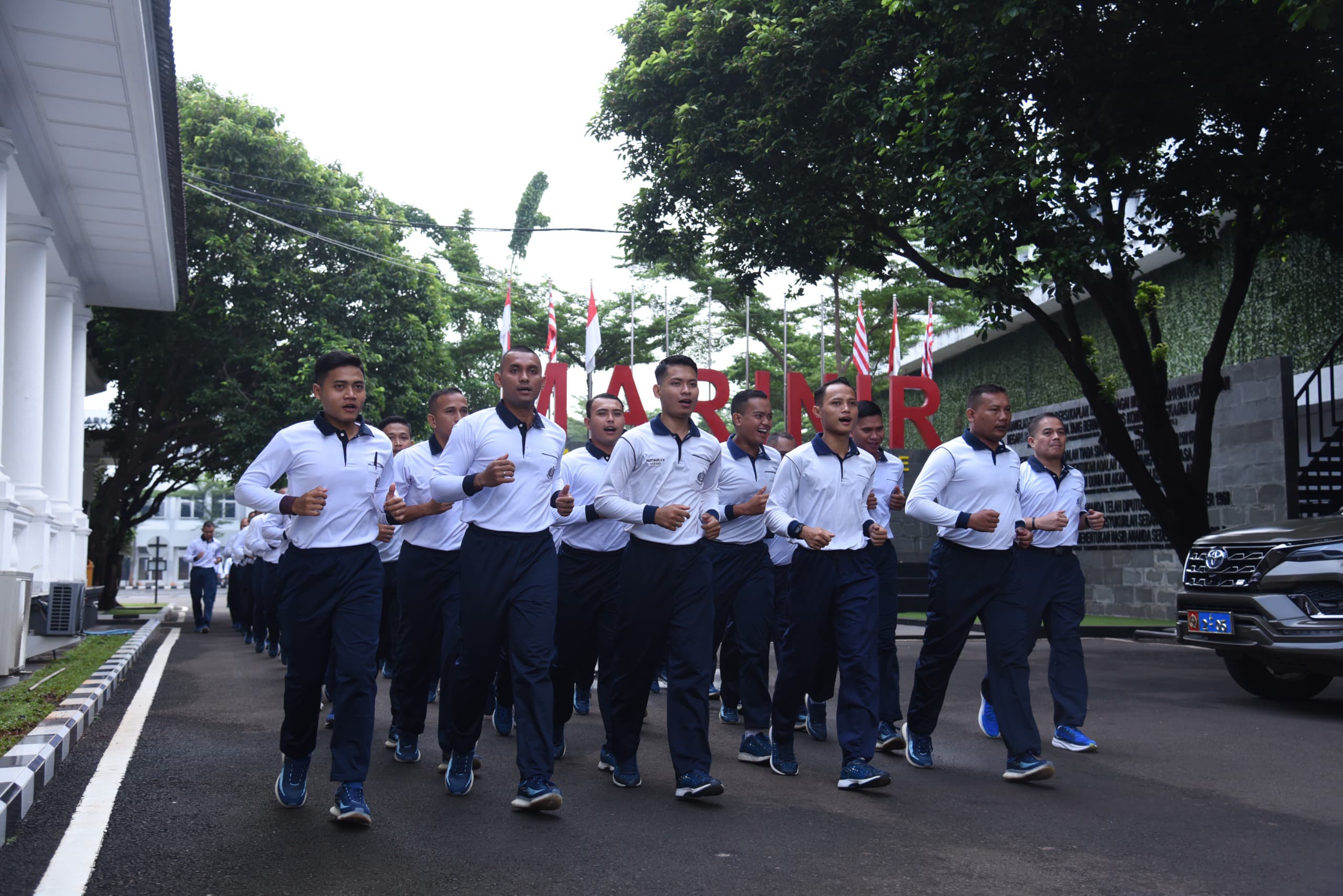 Kegiatan diawali dengan pemanasan menghindari akan adanya cidera, dilanjutkan lari pagi dan jalan santai dengan rute mengelilingi Mako Kormar. Suasana penuh semangat dan kekeluargaan mewarnai kegiatan ini.