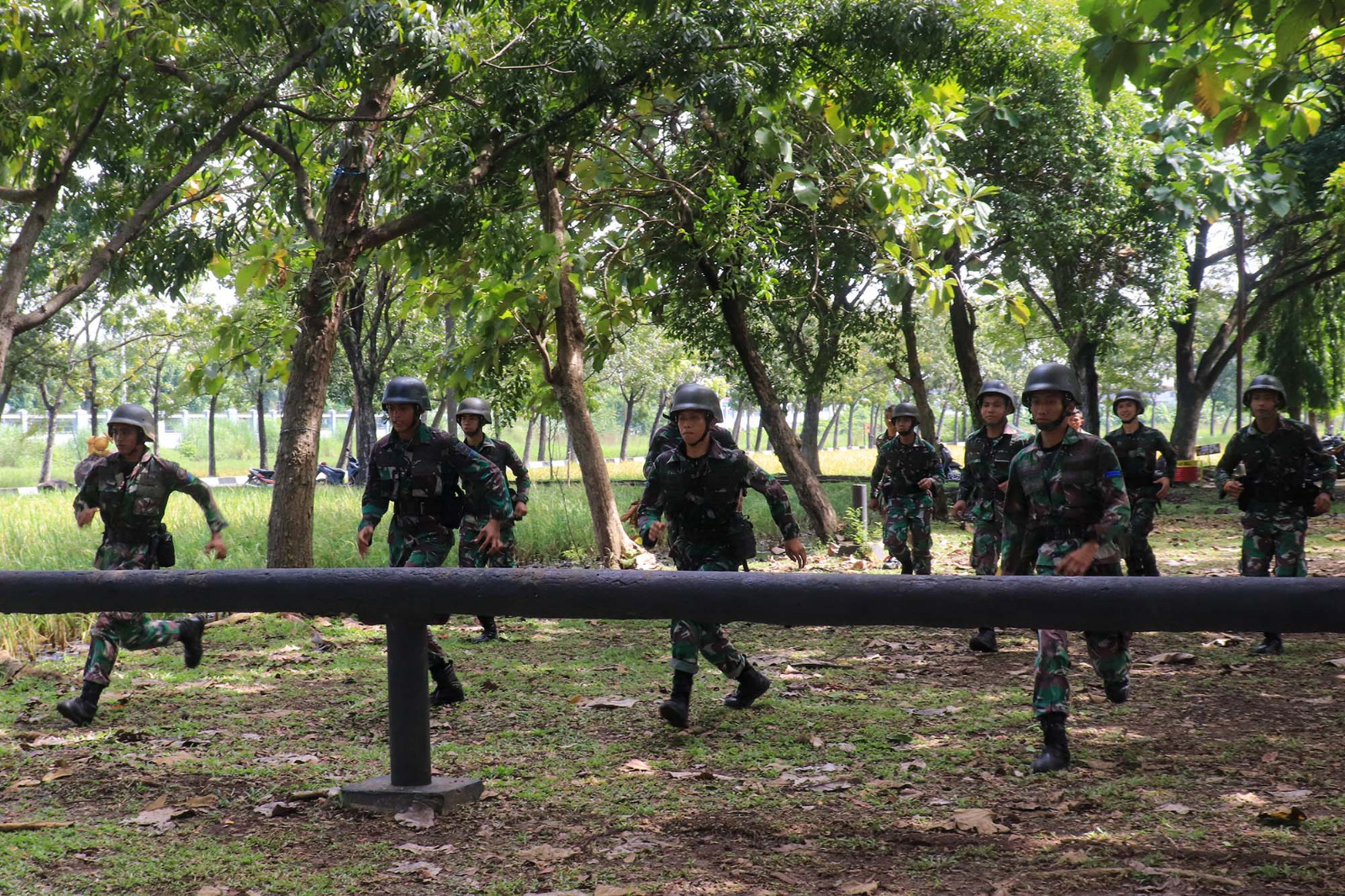 TNI AL, Dispen Kormar (Sidoarjo). Dalam rangka meningkatkan kemampuan fisik, prajurit Batalyon Infanteri 3 Marinir melaksanakan latihan Halang Rintang di Lapangan Halang Rintang Brigif 2 Marinir Gedangan, Sidoarjo, Jawa Timur. Jumat (19/04/2024).