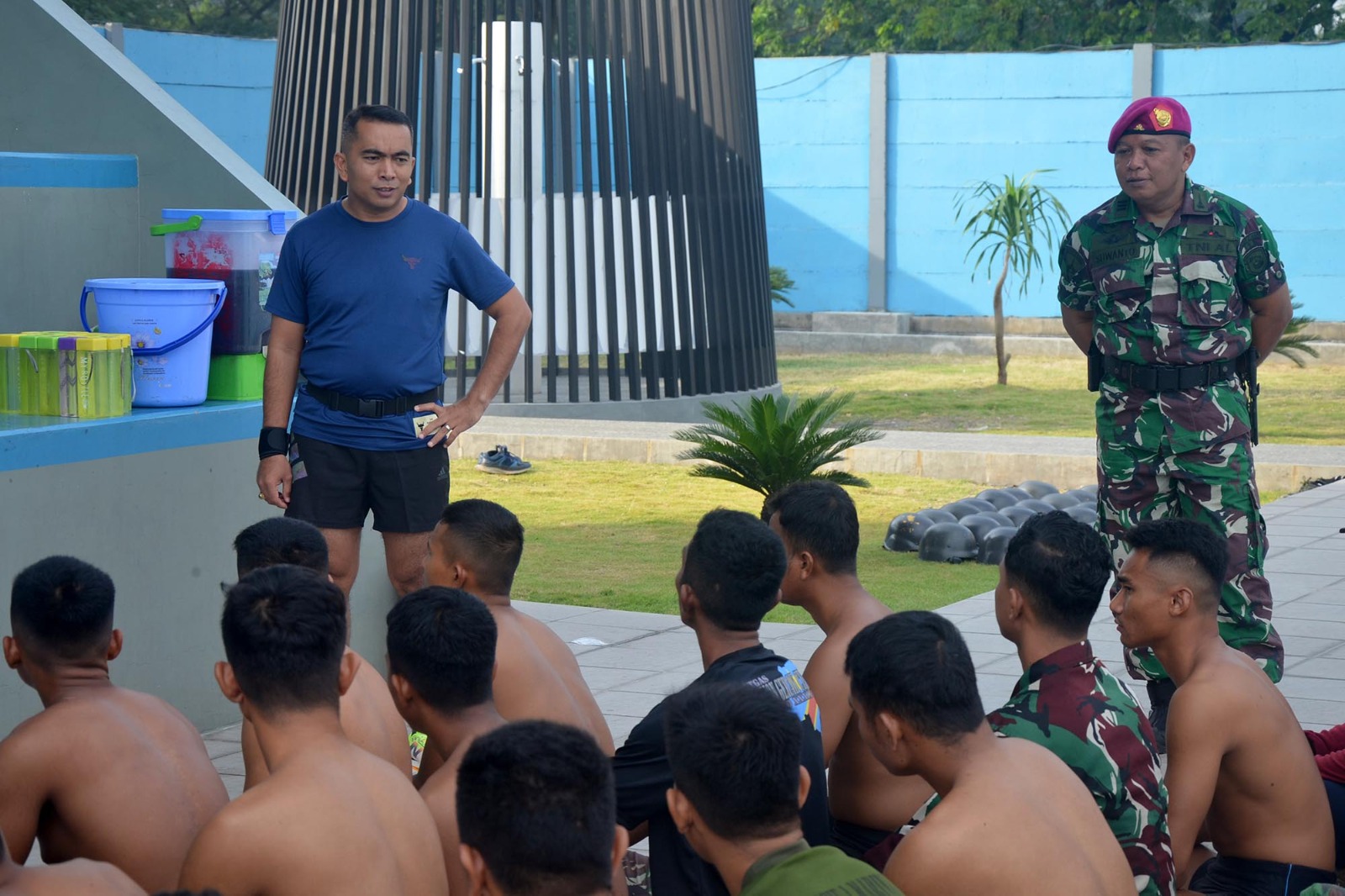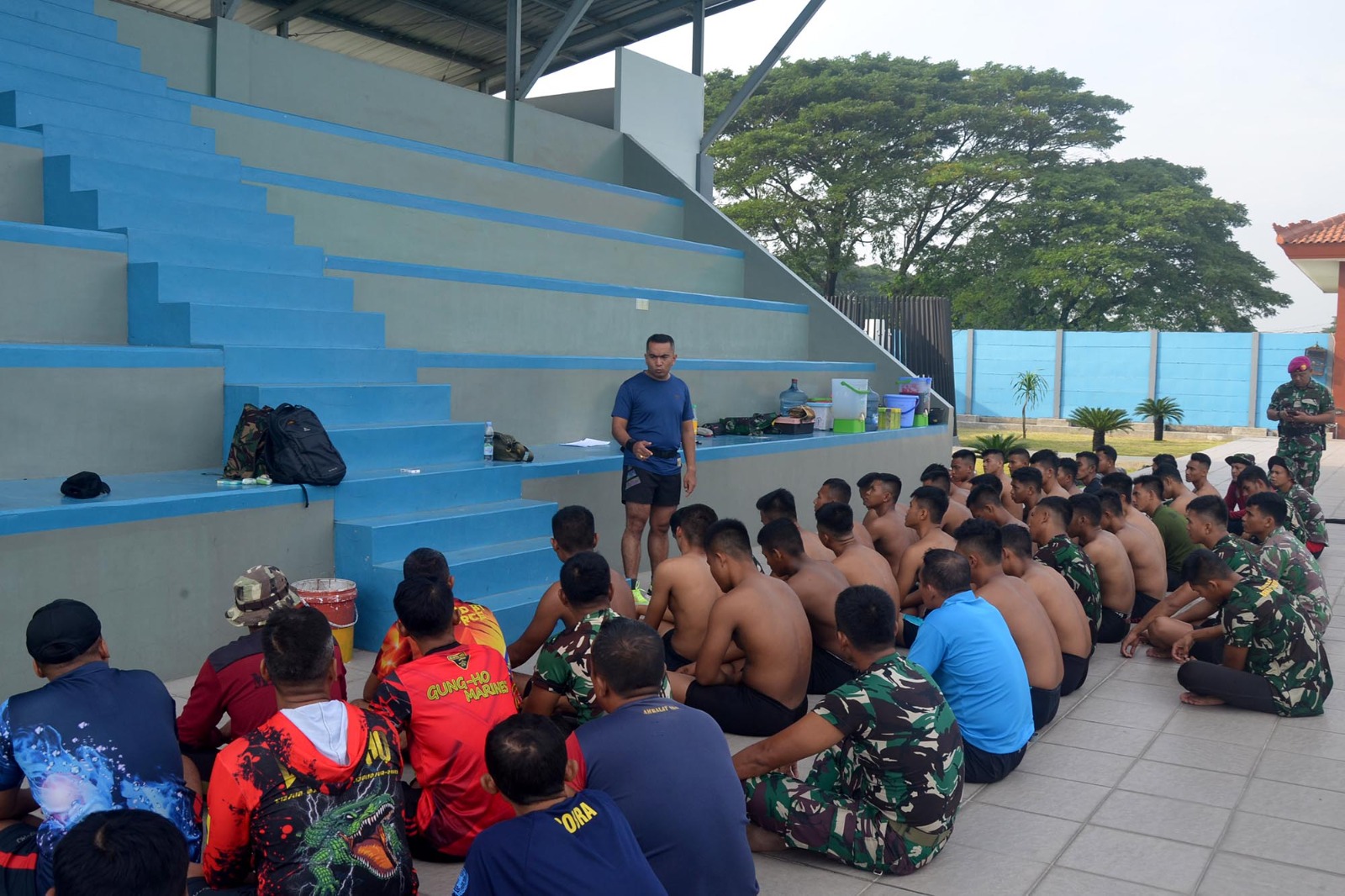 TNI AL, Dispen Kormar (Sidoarjo) Dalam rangka menumbuhkan semangat juang Atlet Binsat, Komandan Batalyon Infanteri 1 Marinir Letkol Marinir Roni Saputra, M.Tr.Opsla memberikan pengarahan kepada Atlet dan Pendukung Tim Binsat Yonif 1 Marinir di Kolam Renang Militer Tirto Sagoro 14 Kesatrian Marinir R. Suhadi, Gedangan, Sidoarjo, Jawa Timur. Senin (13/05/2024)
