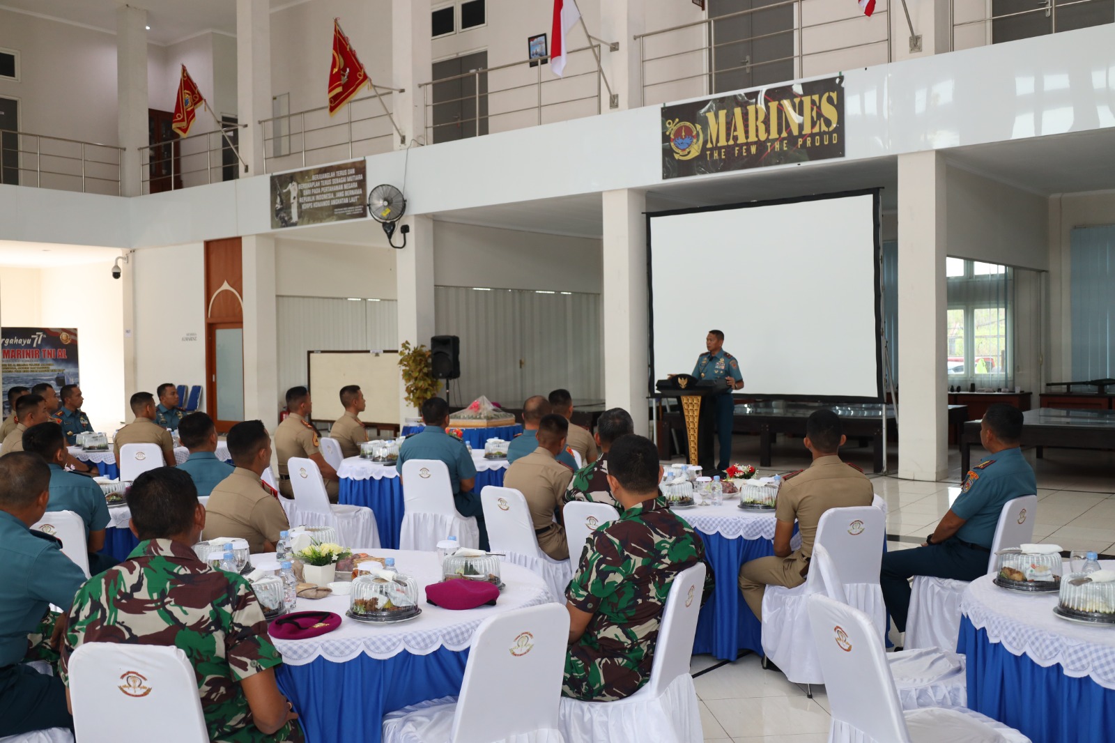 Dispen Kormar TNI Angkatan Laut (Surabaya). Komandan Korps Marinir (Dankormar) Mayjen TNI (Mar) Endi Supardi, S.E., M.M., M.Tr. Opsla., CHRMP., CRMP., diwakili Wakil Komandan Korps Marinir (Wadan Kormar) Brigjen TNI (Mar) Suherlan memberikan pembekalan kepada Taruna Akademi Angkatan Laut (AAL) Tingkat IV Angkatan ke-69 yang digelar di Gedung Maspardi, Kampus AAL, Bumimoro, Surabaya. Rabu (03/07/2024).