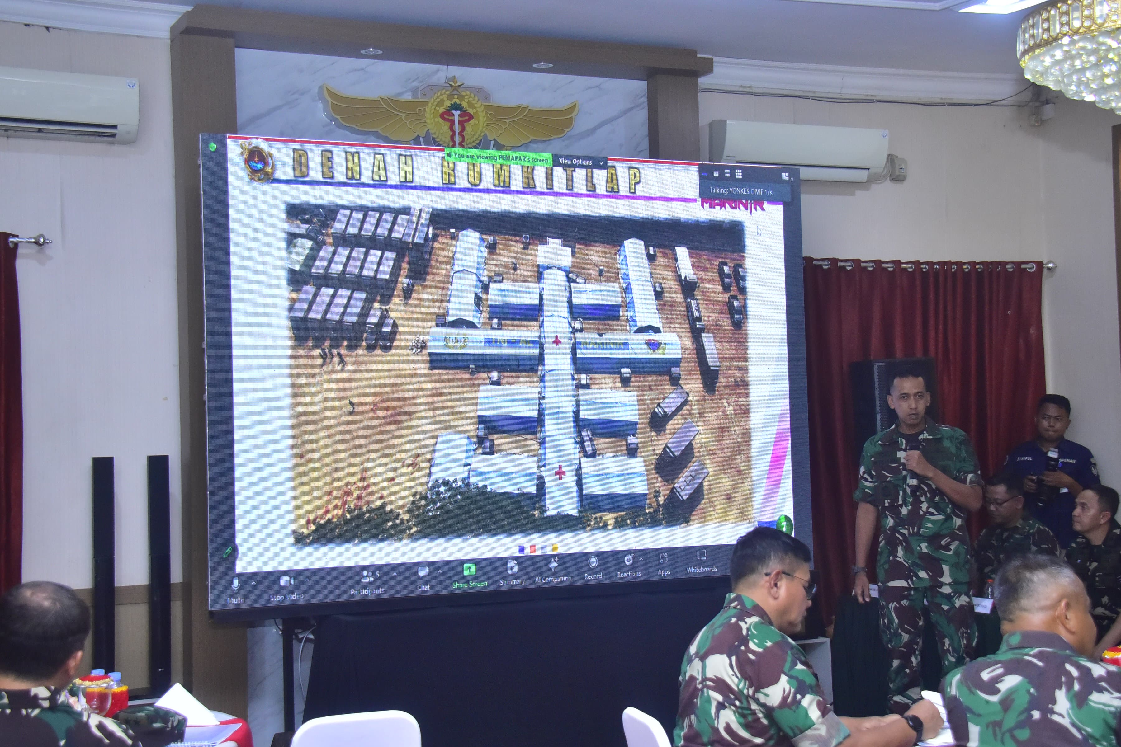 Setelah kegiatan peninjauan Panglima TNI menerima Paparan dari kesiapan Rumah Sakit Lapangan Internasional Gaza Palestina dari Tiap-tiap Komandan Batalyon Kesehatan, dalam kegiatan ini juga dikuti melaui Video Confrens kesiapan Rumah Sakit Lapangan Internasional Gaza Palestina Marinir di Lapangan Apel Brigif 1 Marinir dan Video Confrens Kesiapan Rumah Sakit Lapangan Internasional Batalyon Kesehatan Mabes TNI AU.