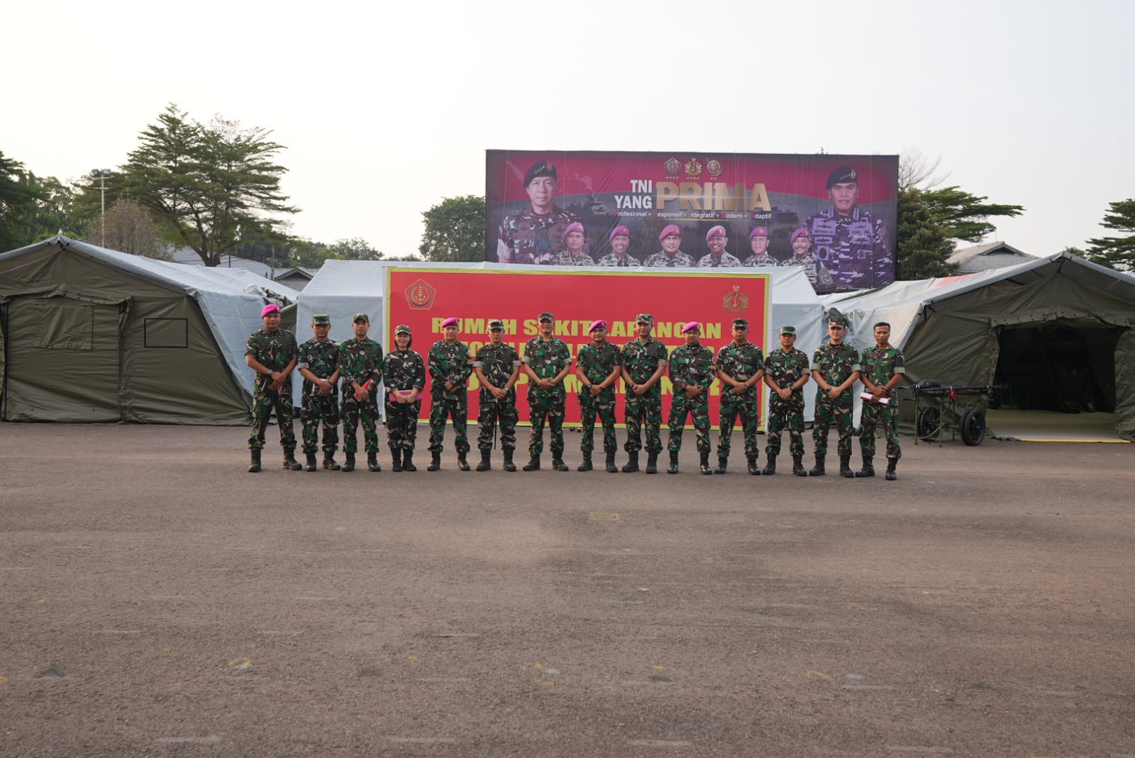 Dispen Kormar TNI Angkatan Laut (Jakarta). Komandan Korps Marinir Mayor Jenderal TNI (Mar) Endi Supardi, S.E., M.M., M.Tr.Opsla., CHRMP., CRMP., diwakili Wakil Komandan Korps Marinir (Wadan Kormar) Brigjen TNI (Mar) Suherlan, menghadiri kegiatan Peninjauan kesiapan Rumah Sakit lapangan Internasional Gaza Palestina di Batalyon Kesehatan 1 Kostrad Jl. Raya Cimandala No.29, Cimandala, Kec. Sukaraja Kab. Bogor, Jawa Barat. Jum'at ( 07/06/2024).