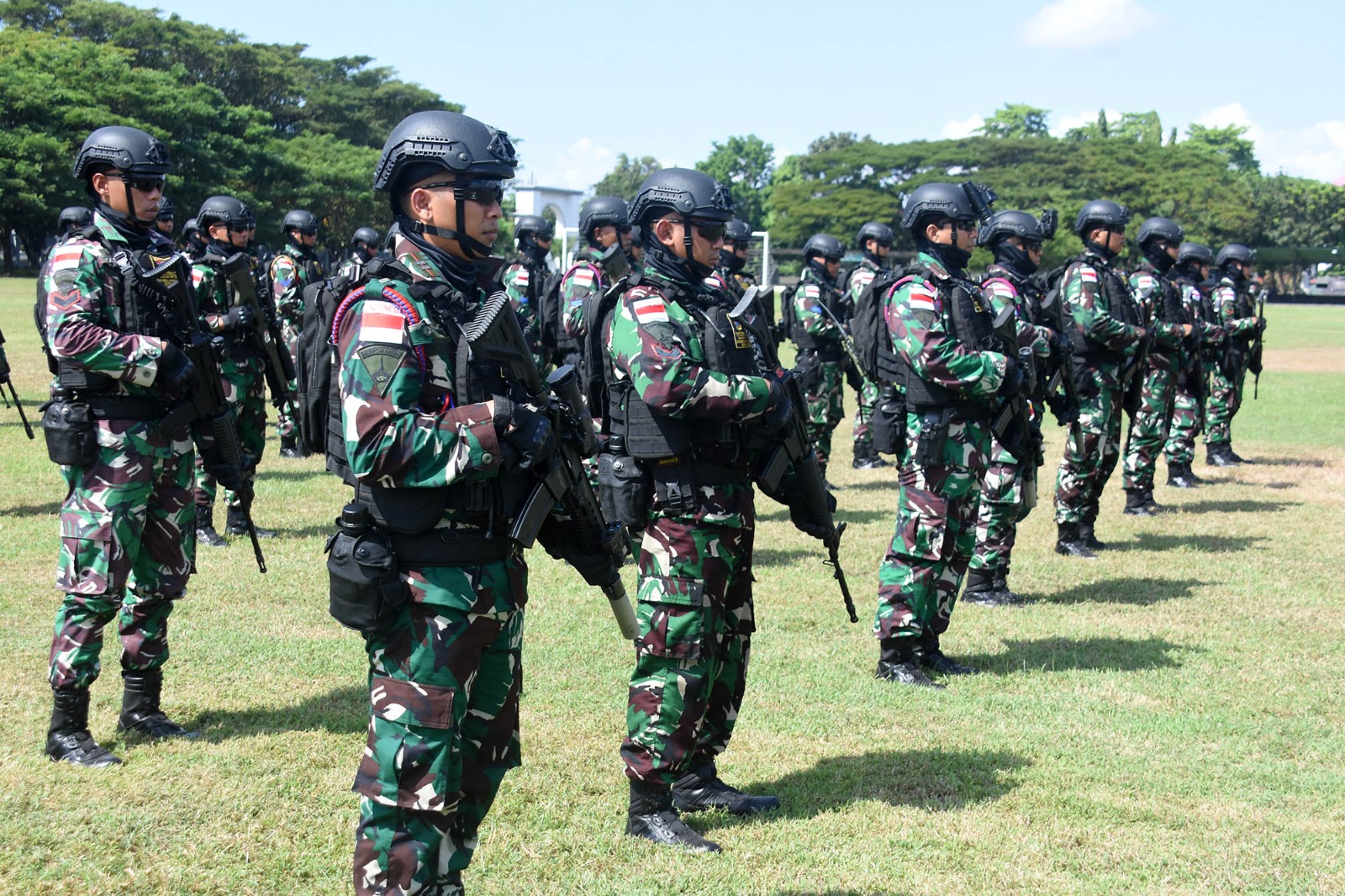 Dispen Kormar, TNI Angkatan Laut (Surabaya). Komandan Korps Marinir (Dankormar) Mayor Jenderal TNI (Mar) Endi Supardi, S.E., M.M., M.Tr.Opsla., CHRMP., CRMP., diwakili Wakil Komandan Korps Marinir (Wadan Kormar) Brigadir Jenderal TNI (Mar) Suherlan memimpin Apel Gelar Pemeriksaan Kesiapan Operasi (Riksiapops) Latihan Bersama (Latma) antara Marinir Indonesia dan USMC dalam skenario Multirateral Rim Of The Pacific (Rimpac) Tahun 2024 di Mako Pasmar 2, Kesatrian Marinir Moekijat, Gedangan, Sidoarjo. Rabu (29/05/2024).