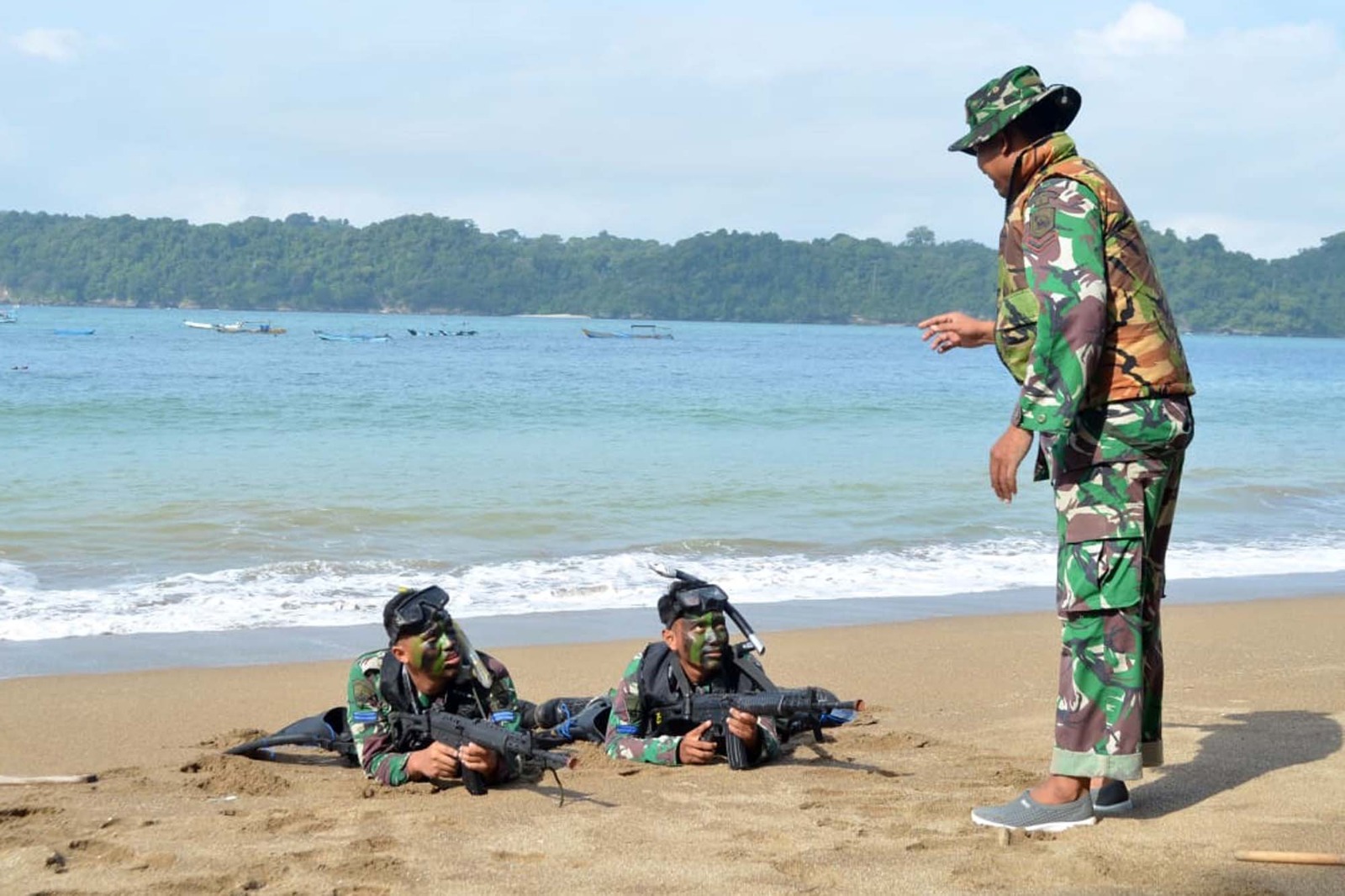TNI AL, Dispen Kormar (Malang) Dalam rangka menjaga naluri tempur, Prajurit Batalyon Infanteri 5 Marinir berlatih untuk mengasah kemampuan pada Materi Aspek Laut yang dilaksanakan di Pantai Tamban, desa Tambak Rejo, Kec. Sumber Manjing Wetan, Malang, Jawa Timur. Sabtu (01/06/2024).