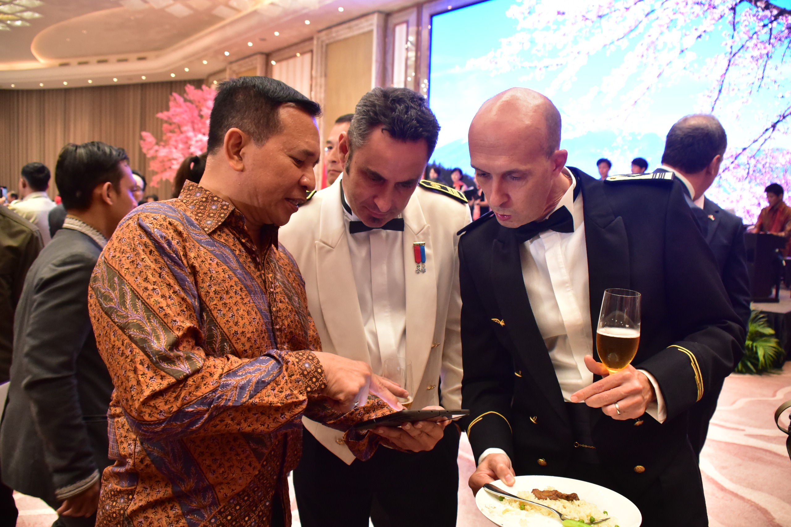 Pada acara tersebut diawali sambutan oleh Duta Besar Masaki dilanjutkan sambutan Tamu kehormatan H.E. Menko Infrastruktur Pembangunan kewilayahan A.H. Yudhoyono, dilanjutkan sesi foto bersama, ramah tamah, penampilan lagu-lagu dari tim paduan suara. Adapun pejabat yang hadir diantaranya Menko Bid. Perekonomian Airlangga H. Beberapa Menteri Kabinet Merah Putih, Athan Negara Sahabat Akreditasi untuk Indonesia di Jakarta.Pejabat Kemhan RI, Mabes TNI, TNI AD, TNI AL, dan TNI AU.