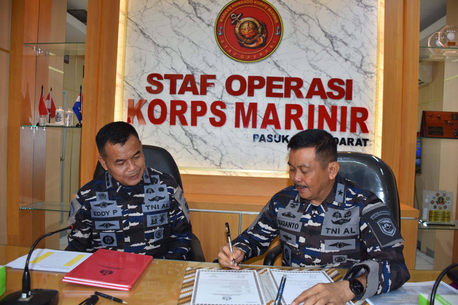 TNI Angkatan Laut, Dispen Kormar, (Jakarta). Dalam rangka serah terima jabatan Asisten Operasi (Asops) Panglima Korps Marinir (Pangkormar), dari Kolonel Marinir Edi Prayitno, S.M., M.Tr.Opsla. melaksanakan memorandum dengan Brigjen TNI (Mar) Sugianto, S.Sos., M.M., M.Tr.Opsla bertempat di ruang Rapat Staf Operasi Korps Marinir, Kesatrian Ali Sadikin, Jl. Prajurit KKO Usman dan Harun No. 40 Jakarta Pusat. Senin (08/09/2025).