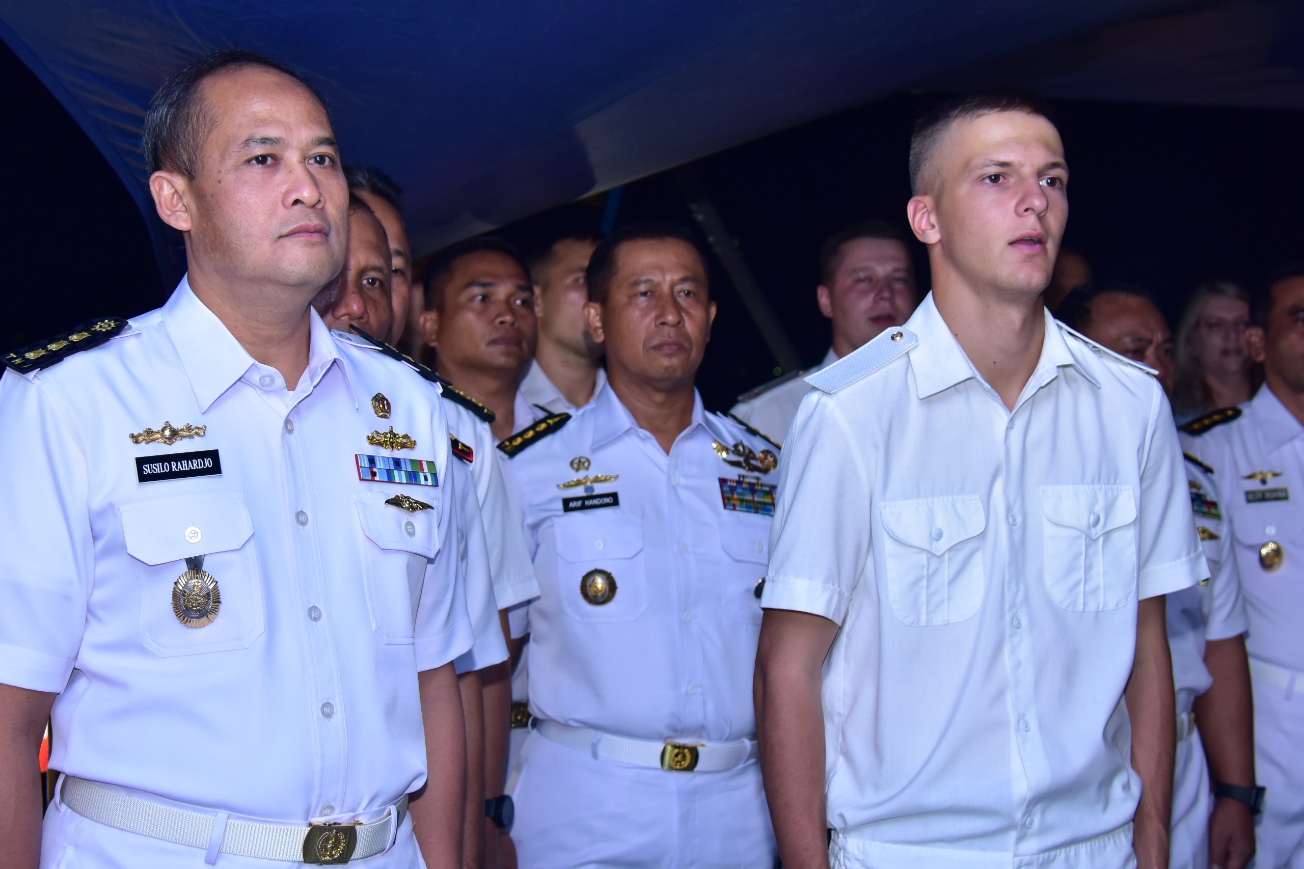 Dispen Kormar. TNI Angkatan Laut (Jakarta) â Asisten Personel Komandan Korps Marinir (Aspers Dankormar), Kolonel Marinir Arif Handono, S.A.P., M.A.P.,, turut hadir mendampingi Asisten Intelijen Kepala Staf Angkatan Laut (Asintel Kasal) Laksamana Muda TNI Akmal S.AP., M.M., M.Tr. Opsla dalam jamuan makan malam yang diselenggarakan oleh Detasemen Armada Pasifik Angkatan Laut Rusia. Acara ini berlangsung di atas kapal perang RFS Rezkiy (343), sebuah korvet kelas Steregushchiy, yang tengah bersandar di Dermaga Tanjung Priok, Jakarta Utara. Selasa (03/06/2025).